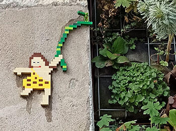 Artiste utilisant les briques de Lego pour réaliser des collages
