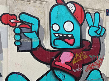 2Dirty est un artiste belge basé à Anvers. Il peint régulièrement un personnage portant une casquette, la bouche ouverte et faisant le signe de la victoire de sa main.