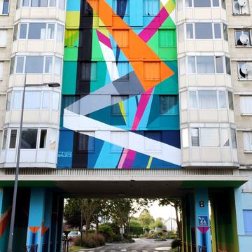 La géométrie est présente tout autour de nous, dans notre environnement. Elle ne laisse rien au hasard, et même si la spontanéité fait partie intégrante du processus de création de Tio Balouz, chaque ligne a sa place et son histoire. Ces lignes sont pour Tio Balouz le fondement de tout, et c'est une manière de leur rendre hommage. Elles représentent les chemins de vie, avec tous les obstacles que l'on rencontre, les différentes alternatives possibles Rien n'est figé, tout est en mouvement. Comme ces lignes qui prennent vie en fonction de nos déplacements. Observer son environnement, déstructurer l'espace et le recréer à sa manière. C'est une façon de s'approprier l'existant et de le remanier à sa guise, en adaptant son regard, et en élargissant les horizons.