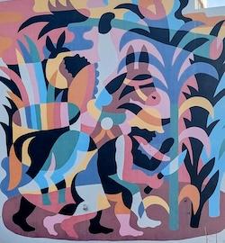 Il intervient directement dans l’espace public, transformant panneaux publicitaires, façades abandonnées ou trottoirs en œuvres colorées et accessibles à tous.