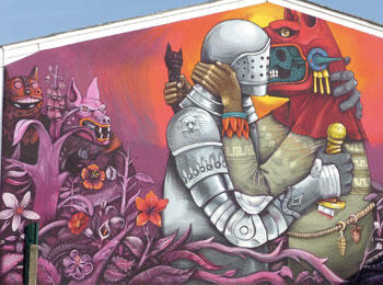 Edgar 'Saner' Flores est un «artiste de rue» mexicain qui s'est distingué sur la scène internationale du graffiti au cours des dix dernières années avec de grandes peintures murales lumineuses et colorées inspirées de la peinture murale mexicaine.