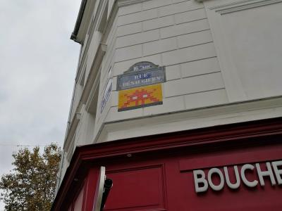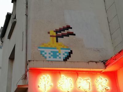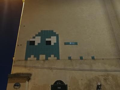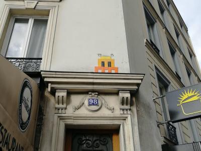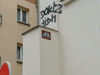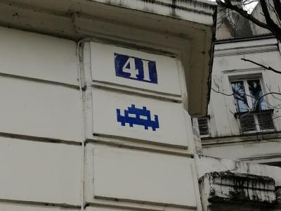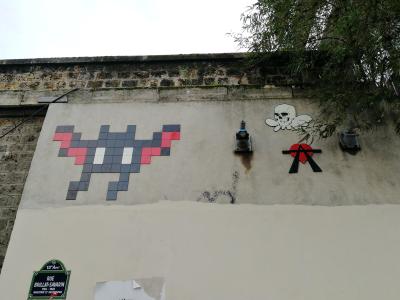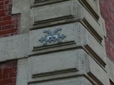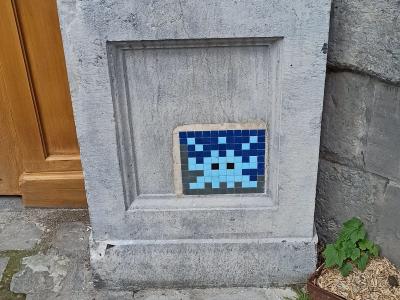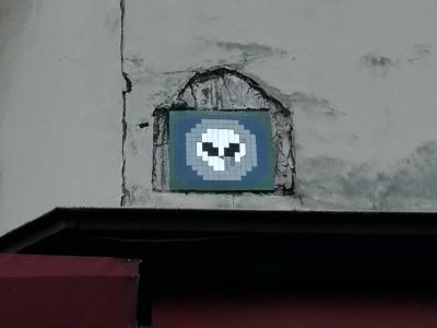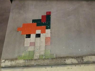 Invader (né en 1969) est le pseudonyme d'un artiste urbain français, dont le travail s'inspire de la pixellation grossière des jeux vidéo 8 bits des années 1970-1980.