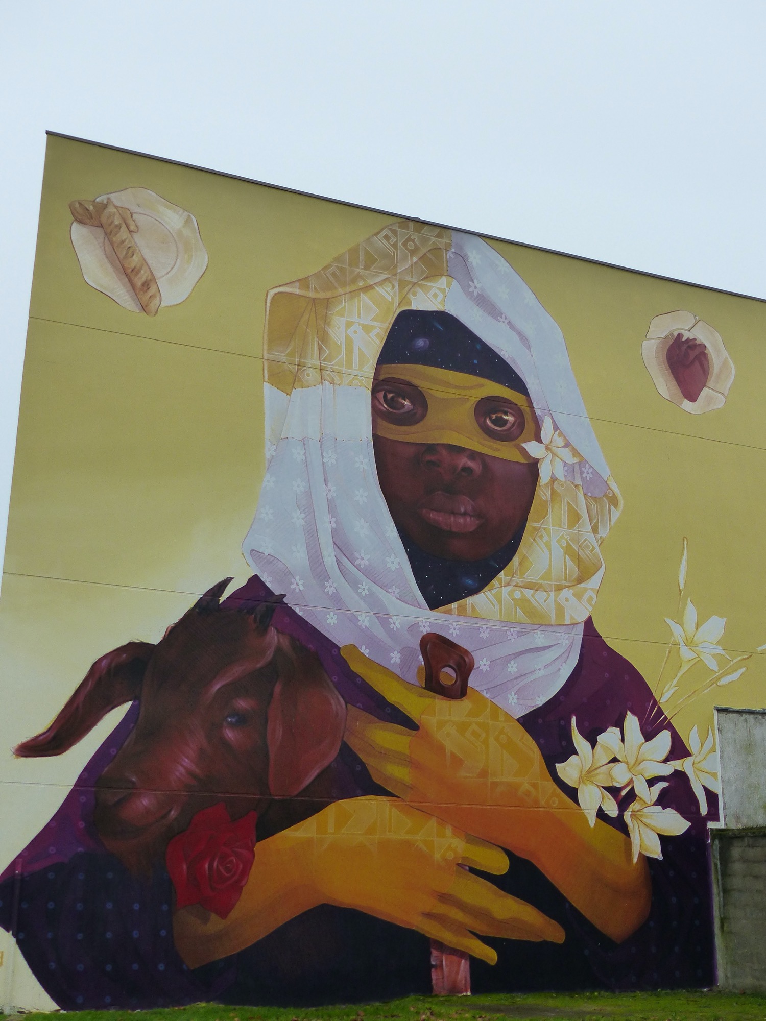 L’oeuvre est de type graffiti. Vous pouvez l’admirer dans la ville de Saint-Nazaire en France et plus précisément ici : 14 Place de la Rampe, 44600 Saint-Nazaire, France.