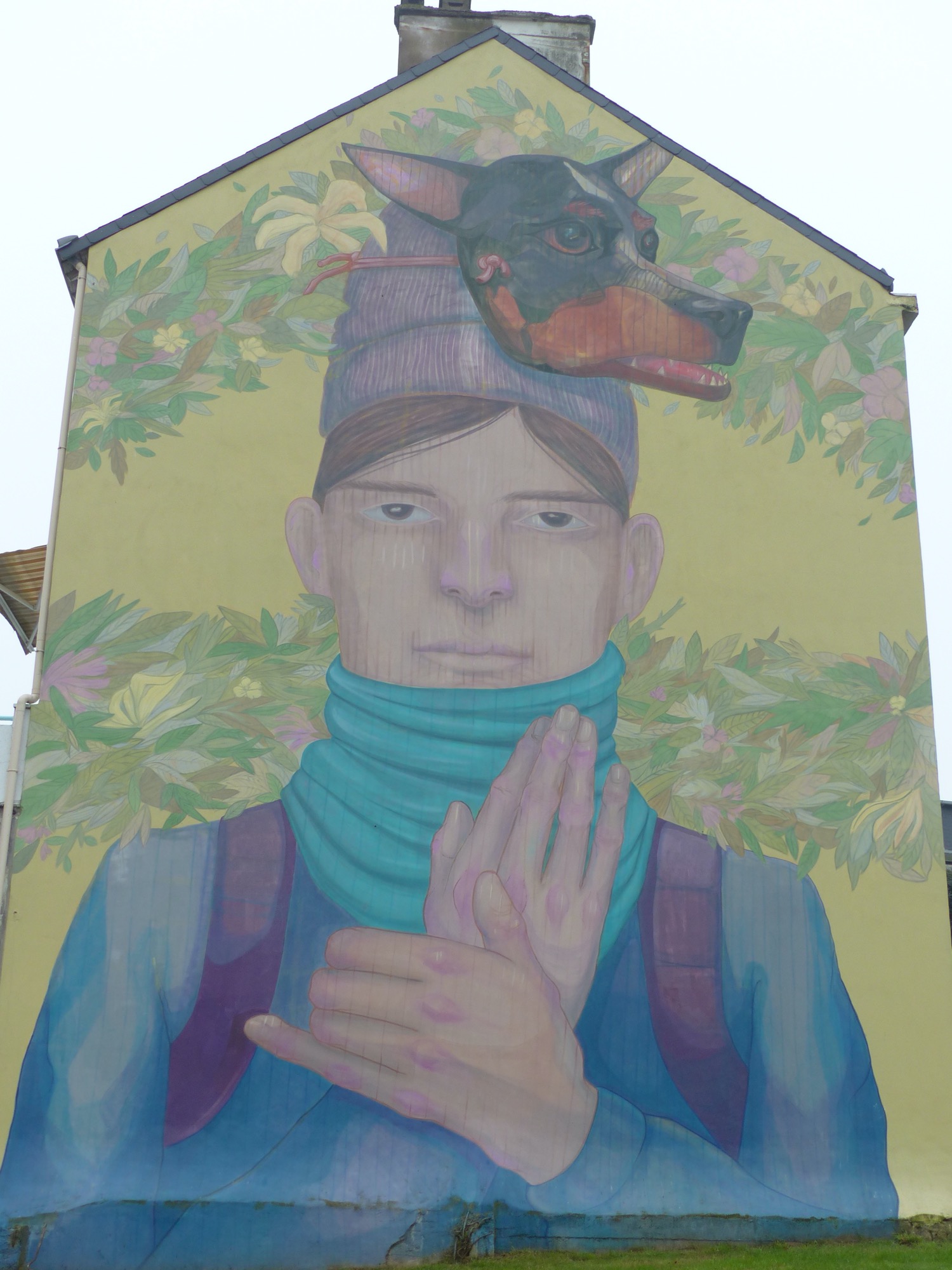 L’oeuvre est de type graffiti. Vous pouvez l’admirer dans la ville de Saint-Nazaire en France et plus précisément ici : 14 Place de la Rampe, 44600 Saint-Nazaire, France.