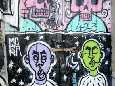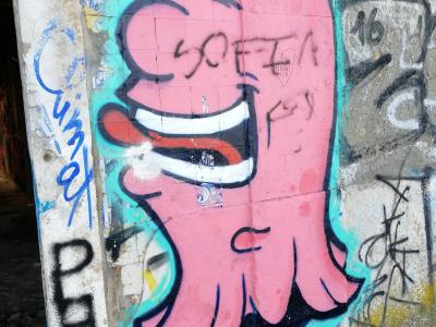L'oeuvre est de type graffiti. Vous pouvez l'admirer dans la ville de Almada en Portugal et plus précisément ici : R. do Ginjal 65, Almada, Portugal.