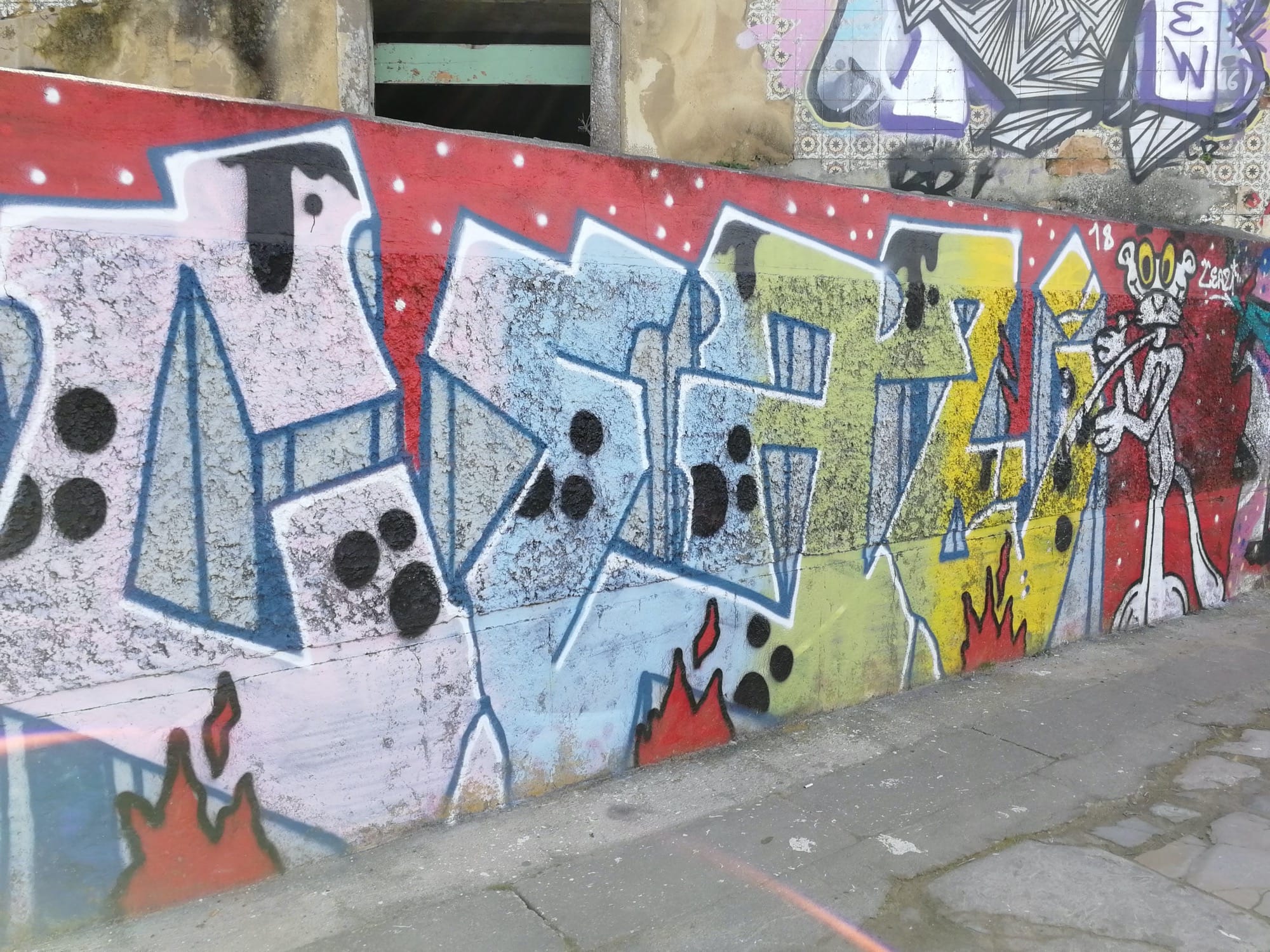 L’oeuvre est de type graffiti. Vous pouvez l’admirer dans la ville de Almada en Portugal et plus précisément ici : R. do Ginjal 65, Almada, Portugal.