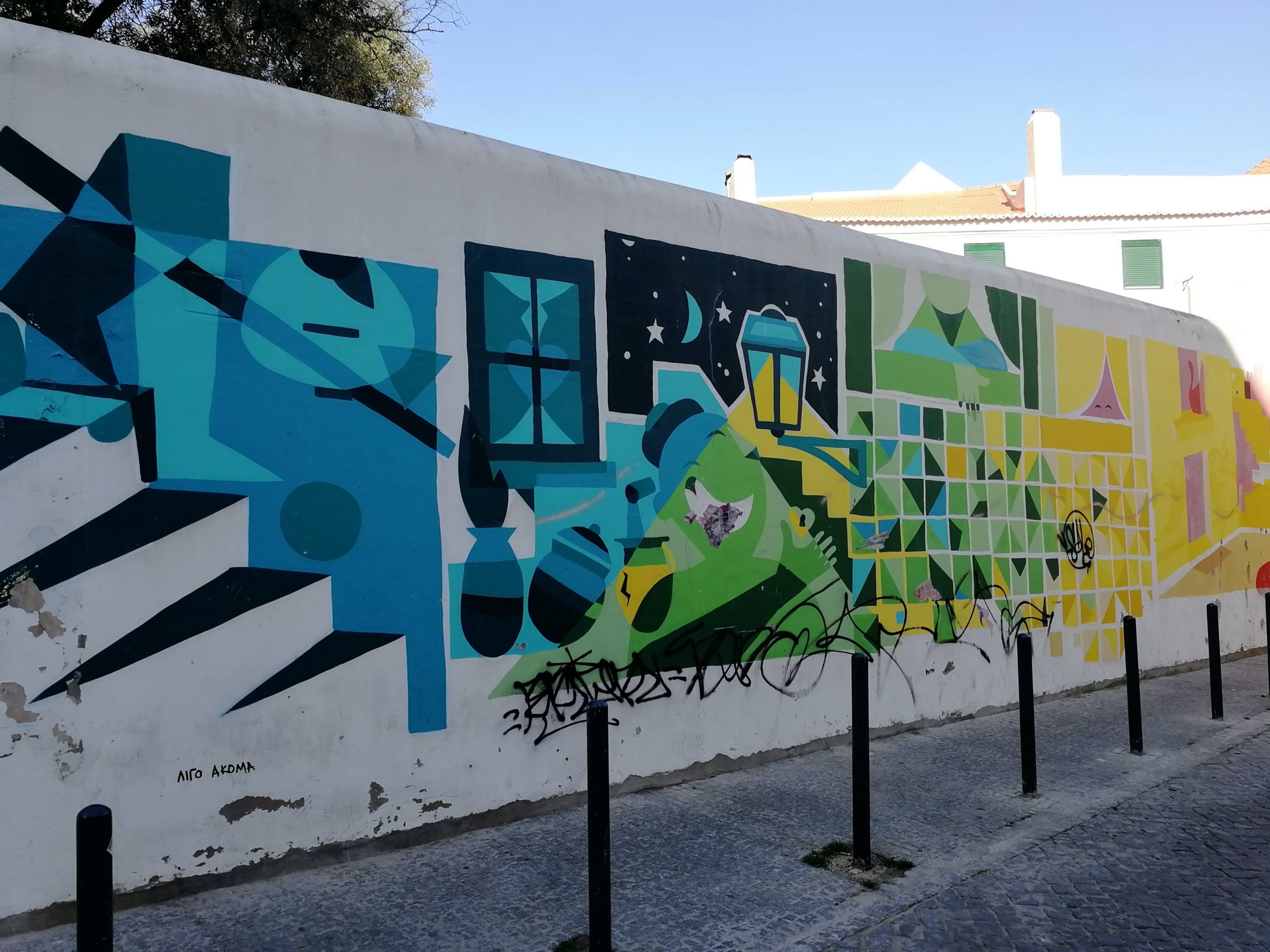 L’oeuvre est de type graffiti. Vous pouvez l’admirer dans la ville de Lisboa en Portugal et plus précisément ici : Rua dos Lagares 22, 1100-595 Lisboa, Portugal.