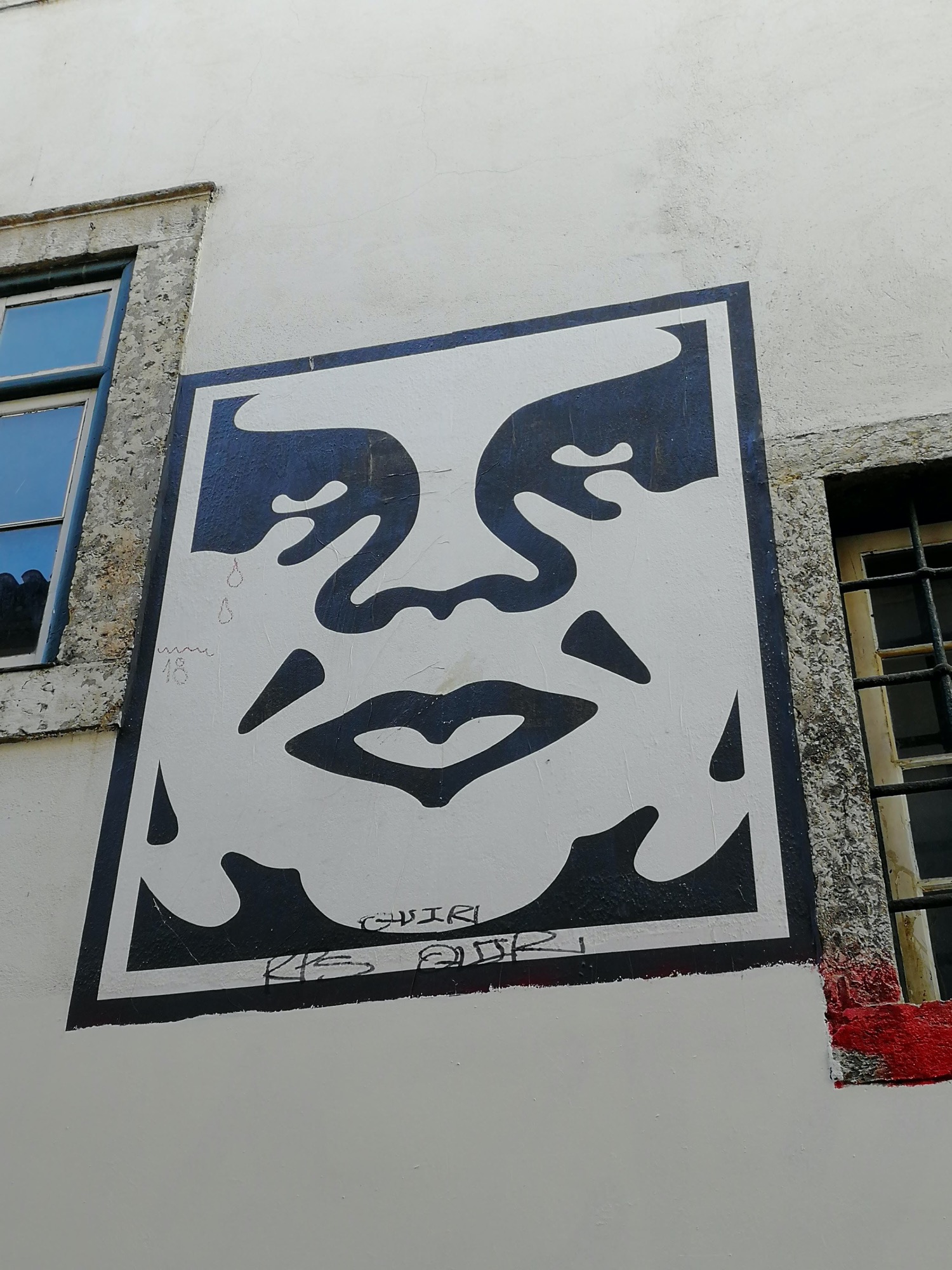 L’oeuvre est de type graffiti. Vous pouvez l’admirer dans la ville de Lisboa en Portugal et plus précisément ici : Tv. dos Fiéis de Deus 46, 1200-190 Lisboa, Portugal.