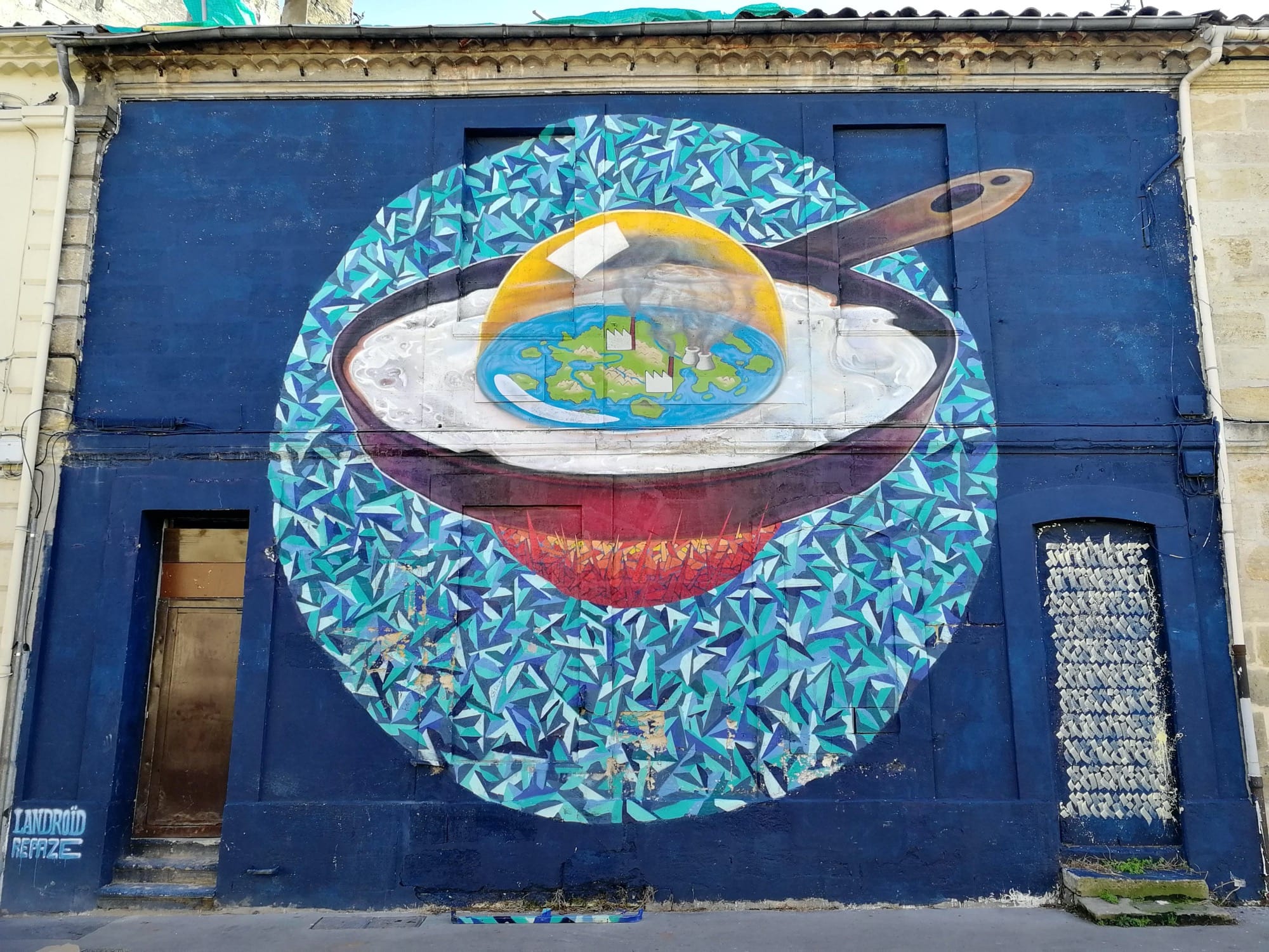 L’oeuvre est de type graffiti. Vous pouvez l’admirer dans la ville de Bordeaux en France et plus précisément ici : 4 Rue des Terres de Borde, 33800 Bordeaux, France.