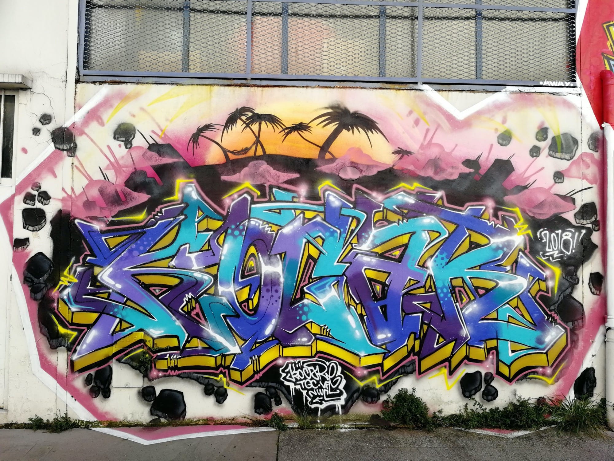 L’oeuvre est de type graffiti. Vous pouvez l’admirer dans la ville de Bordeaux en France et plus précisément ici : 95 Quai de Paludate, 33800 Bordeaux, France.