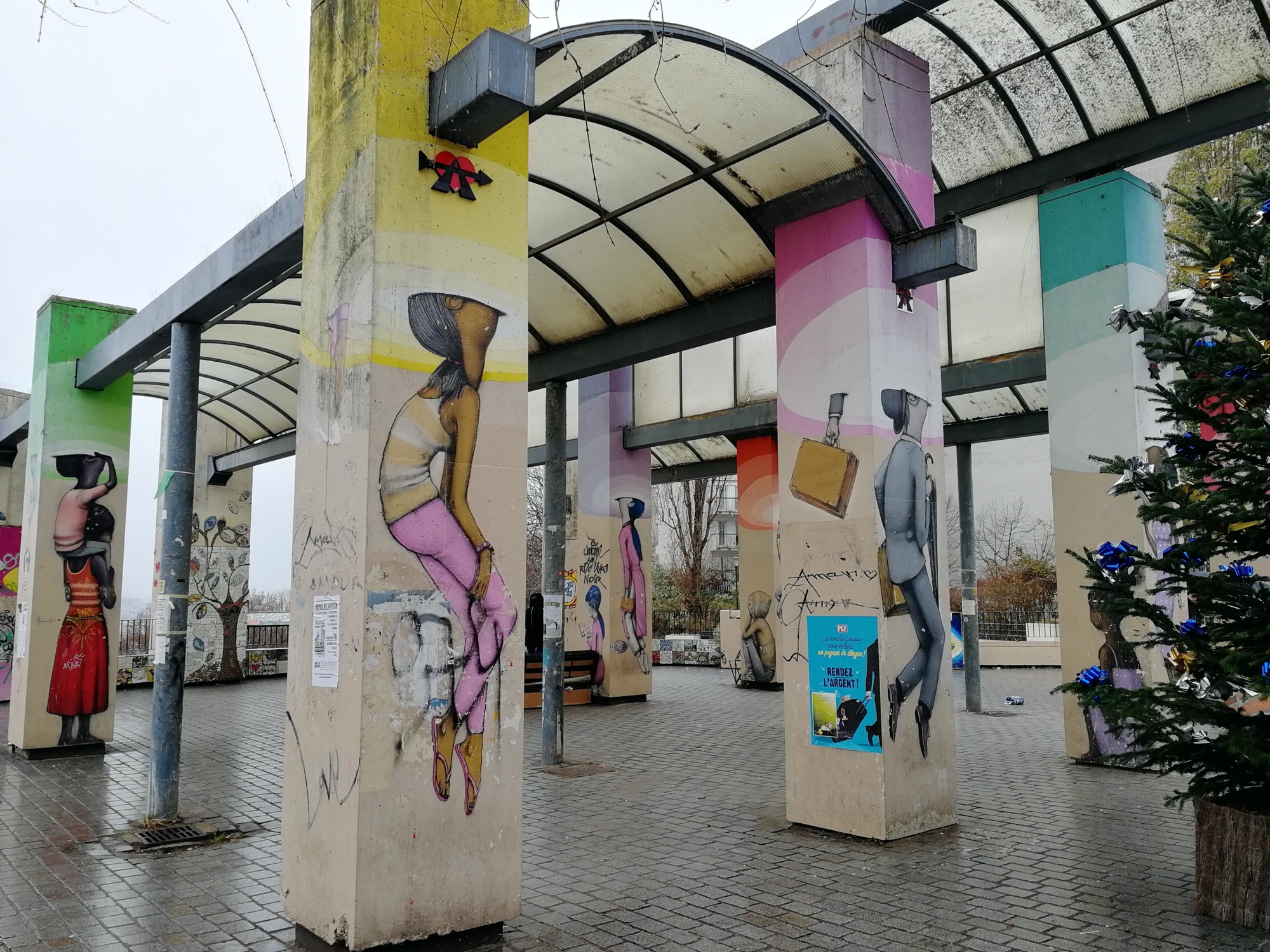 L’oeuvre est de type graffiti. Vous pouvez l’admirer dans la ville de Paris en France et plus précisément ici : Parc de Belleville, 47 Rue des Couronnes, 75020 Paris, France.
