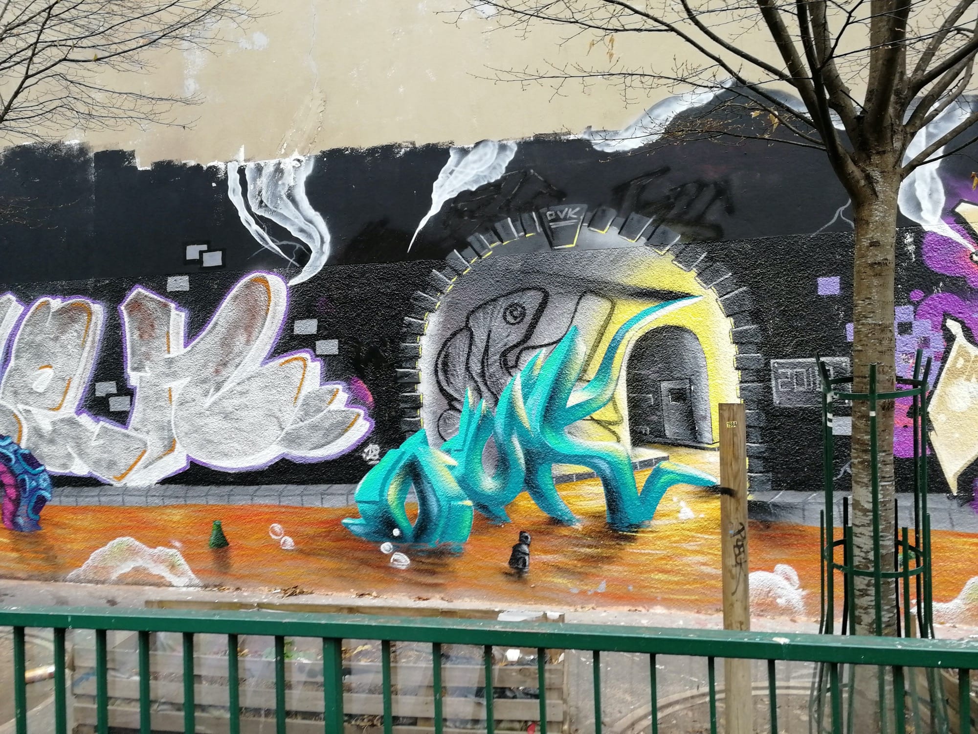 L’oeuvre est de type graffiti. Vous pouvez l’admirer dans la ville de Paris en France et plus précisément ici : 68 Rue de la Fontaine au Roi, 75011 Paris, France.