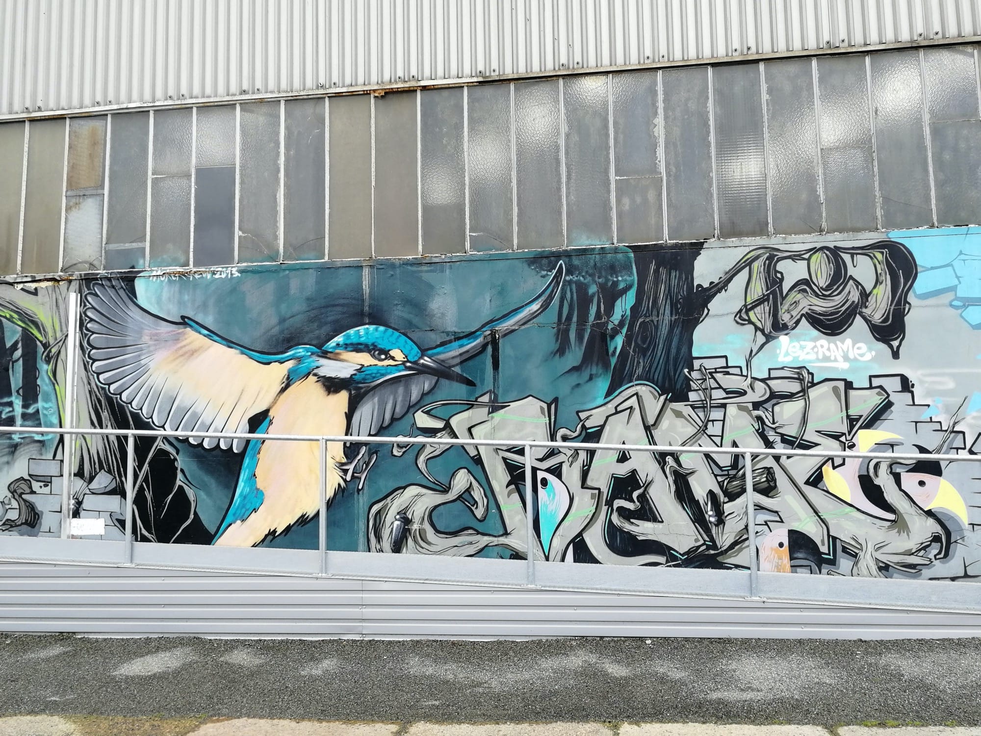 L’oeuvre est de type graffiti. Vous pouvez l’admirer dans la ville de Redon en France et plus précisément ici : 12 Quai Jean Bart, 35600 Redon, France.