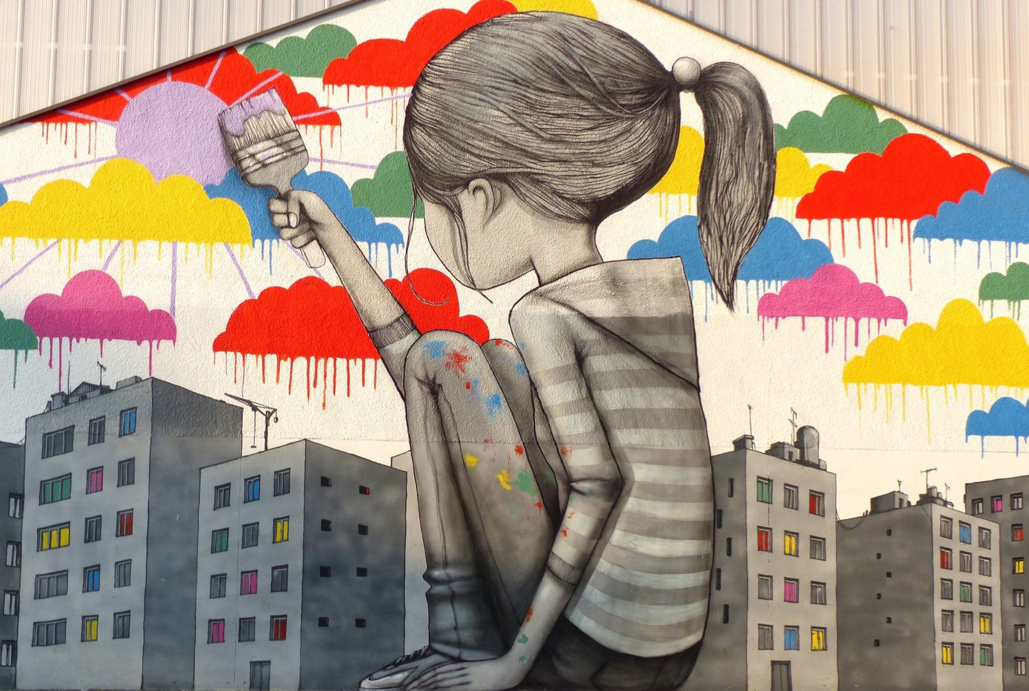 L’oeuvre est de type graffiti. Vous pouvez l’admirer dans la ville de Fleury-les-Aubrais en France et plus précisément ici : 36 Rue du Onze Novembre, 45400 Fleury-les-Aubrais, France.