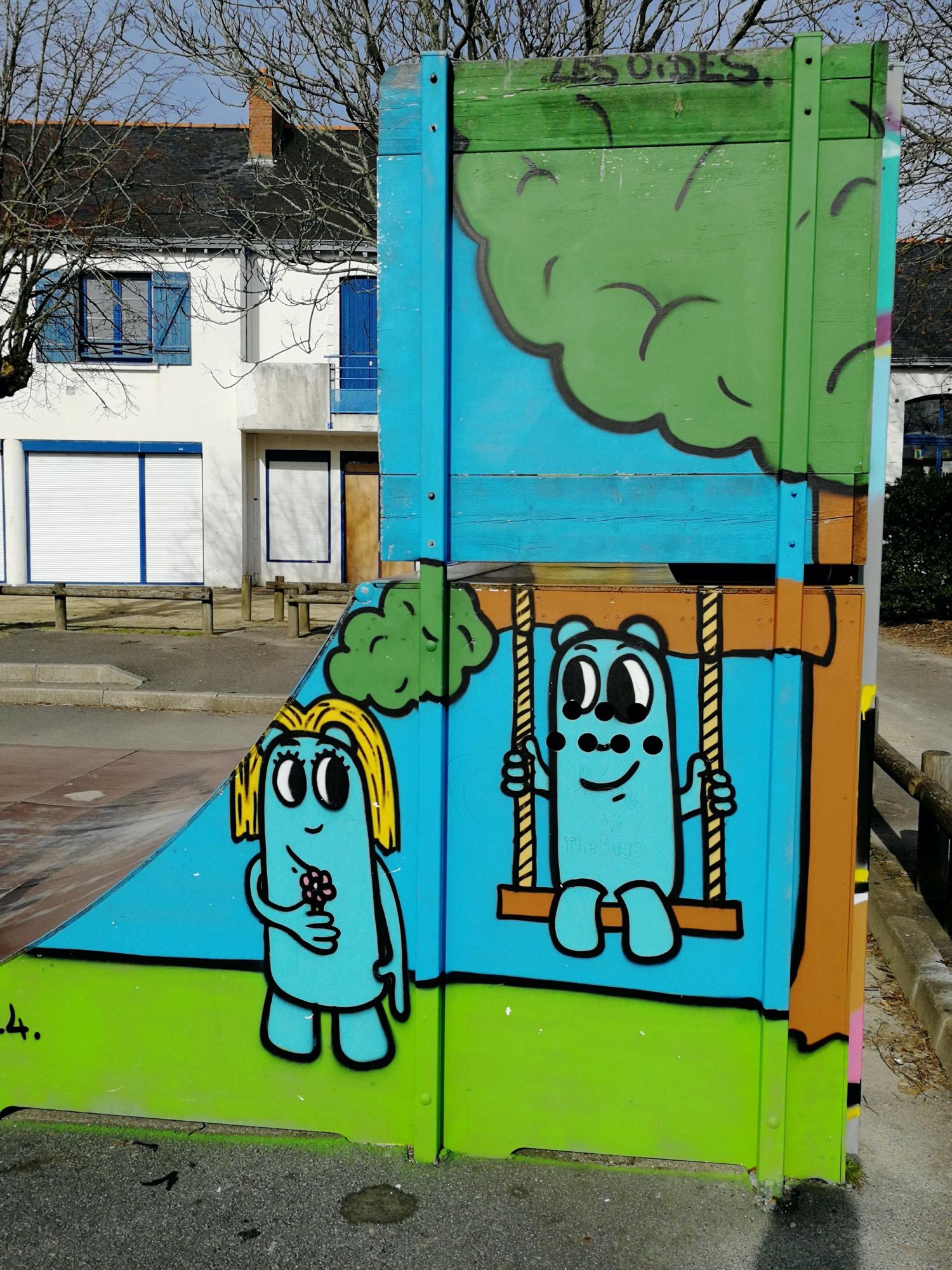 L’oeuvre est de type graffiti. Vous pouvez l’admirer dans la ville de Pornichet en France et plus précisément ici : 27 Avenue des Écoles, 44380 Pornichet, France.