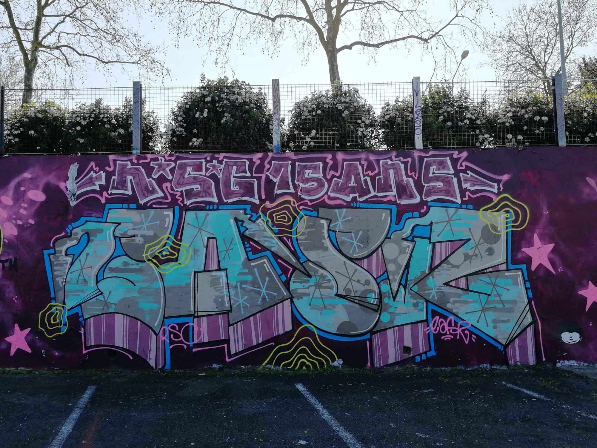 L’oeuvre est de type graffiti. Vous pouvez l’admirer dans la ville de Angers en France et plus précisément ici : 29 Square du Doyenné, 49100 Angers, France.