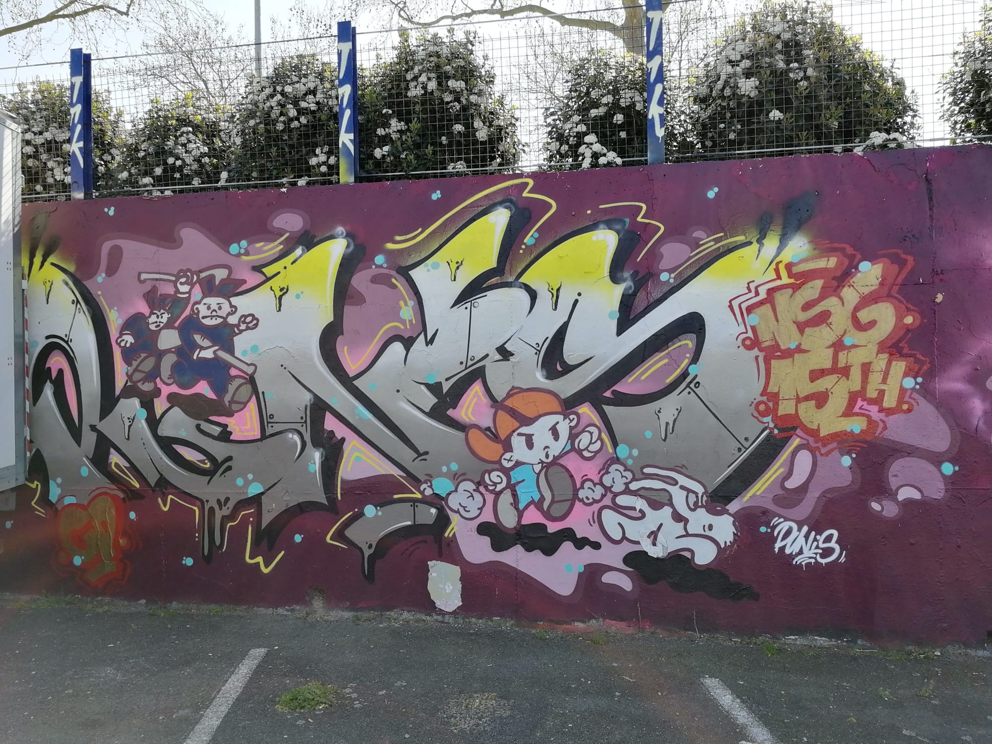 L’oeuvre est de type graffiti. Vous pouvez l’admirer dans la ville de Angers en France et plus précisément ici : 56 Boulevard du Doyenné, 49100 Angers, France.