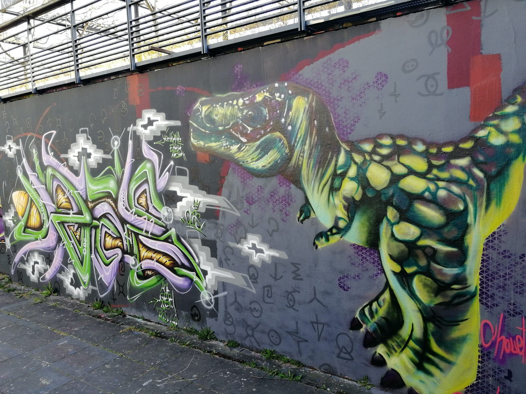 L’oeuvre est de type graffiti. Vous pouvez l’admirer dans la ville de Angers en France et plus précisément ici : 7 Allée François Mitterrand, 49100 Angers, France.