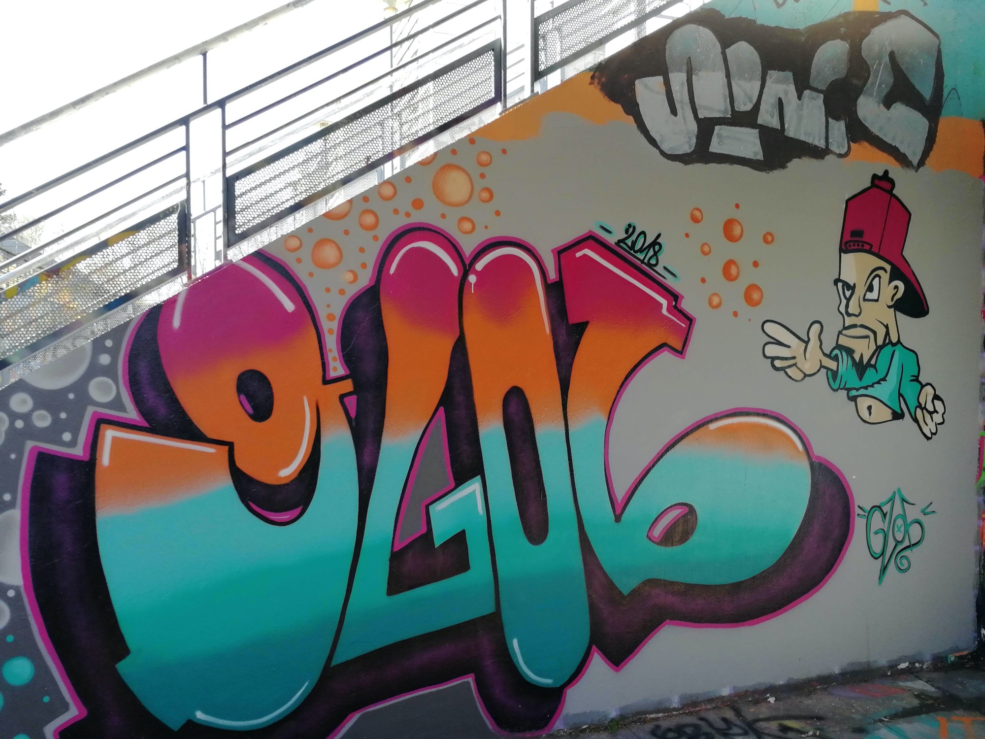 L’oeuvre est de type graffiti. Vous pouvez l’admirer dans la ville de Angers en France et plus précisément ici : 11 Allée François Mitterrand, 49100 Angers, France.