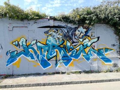 L'oeuvre est de type graffiti. Vous pouvez l'admirer dans la ville de Nantes en France et plus précisément ici : 3 Boulevard de Cardiff, 44100 Nantes, France.