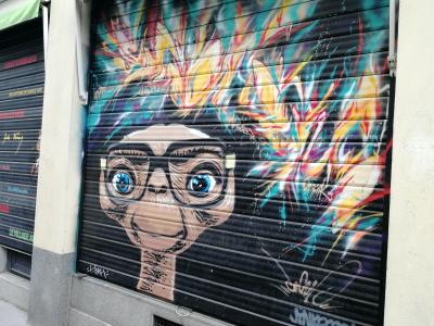 L'oeuvre est de type graffiti. Vous pouvez l'admirer dans la ville de Nantes en France et plus précisément ici : 1 Rue de la Galissonnière, 44000 Nantes, France.