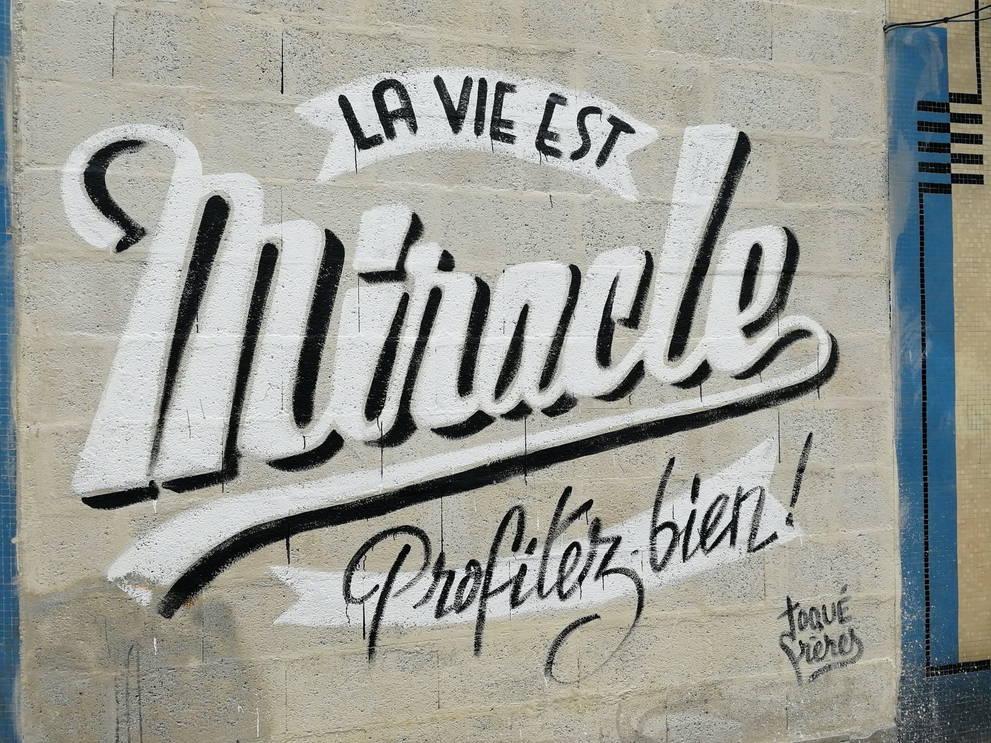 Graffiti 1523 La vie est miracle, profitez bien ! de Toqué frères à Nantes France