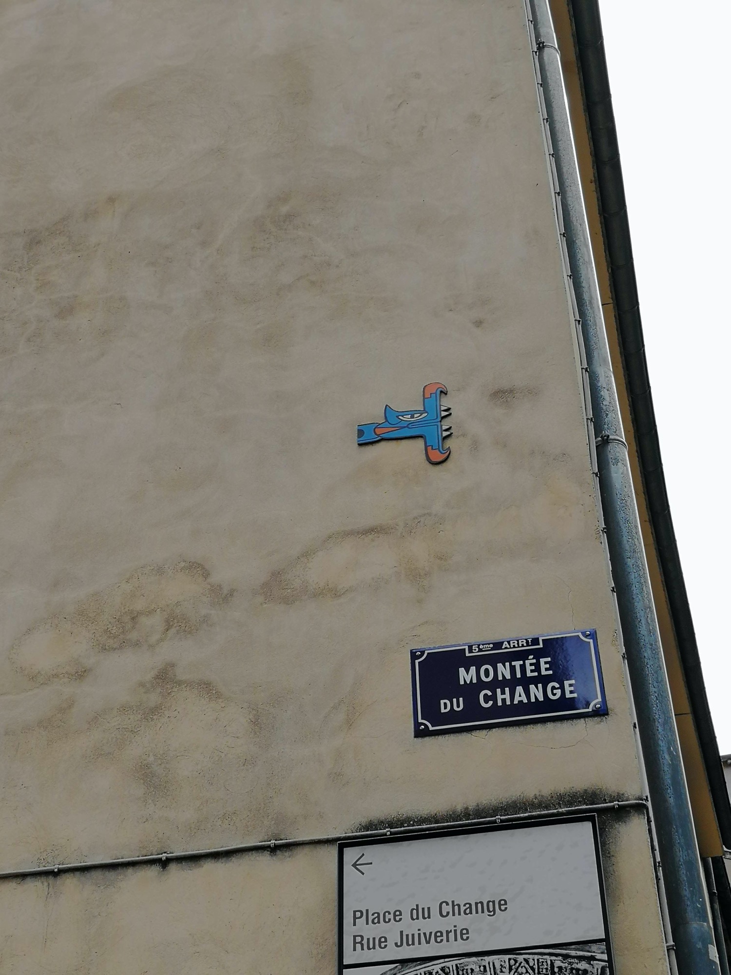 L’oeuvre est de type graffiti. Vous pouvez l’admirer dans la ville de Lyon en France et plus précisément ici : 11 Montée Saint-Barthélémy, 69005 Lyon, France.