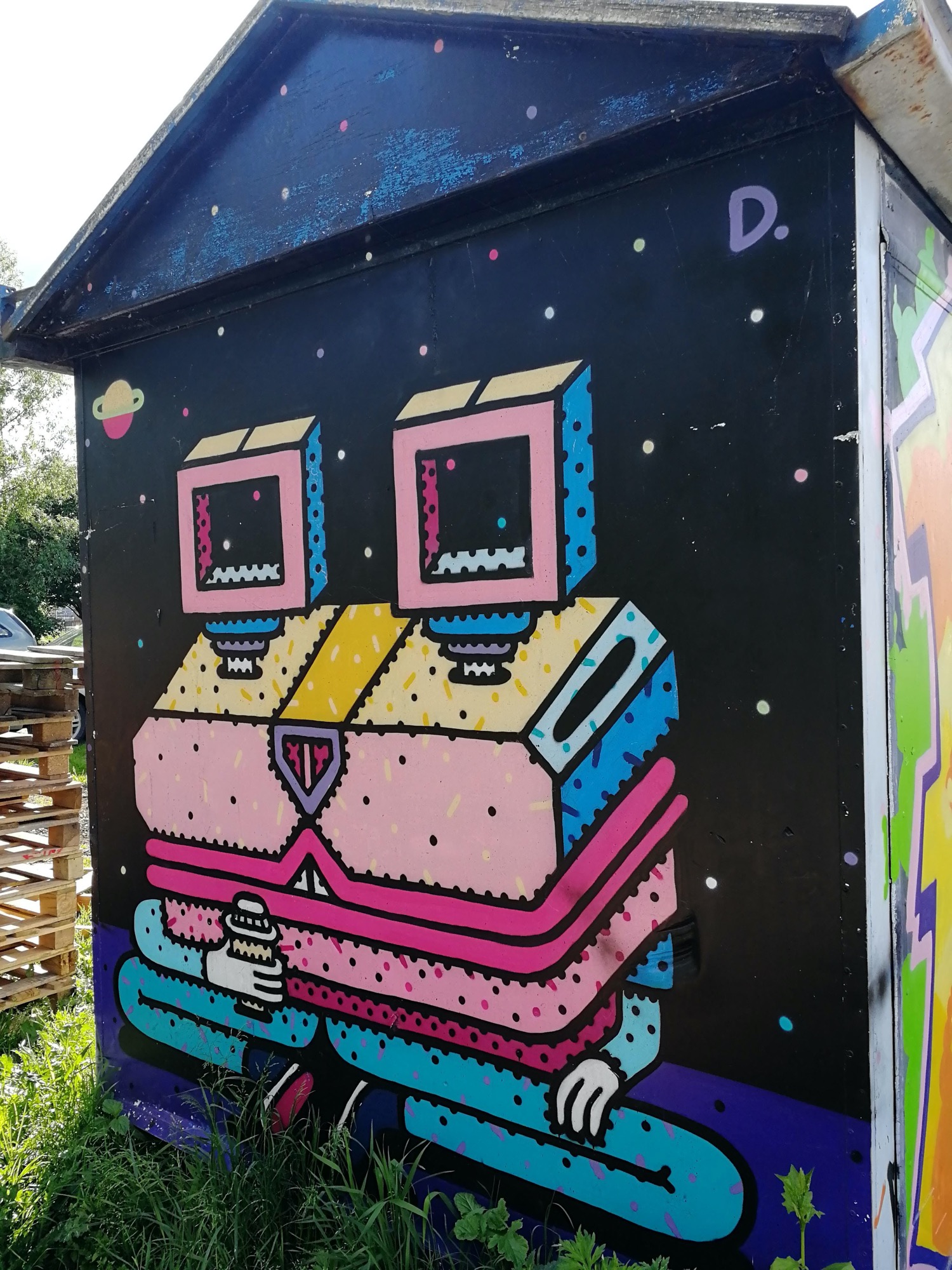 L’oeuvre est de type graffiti. Vous pouvez l’admirer dans la ville de Amsterdam en Netherlands et plus précisément ici : NDSM-Plein 86a, 1033 WB Amsterdam, Pays-Bas.