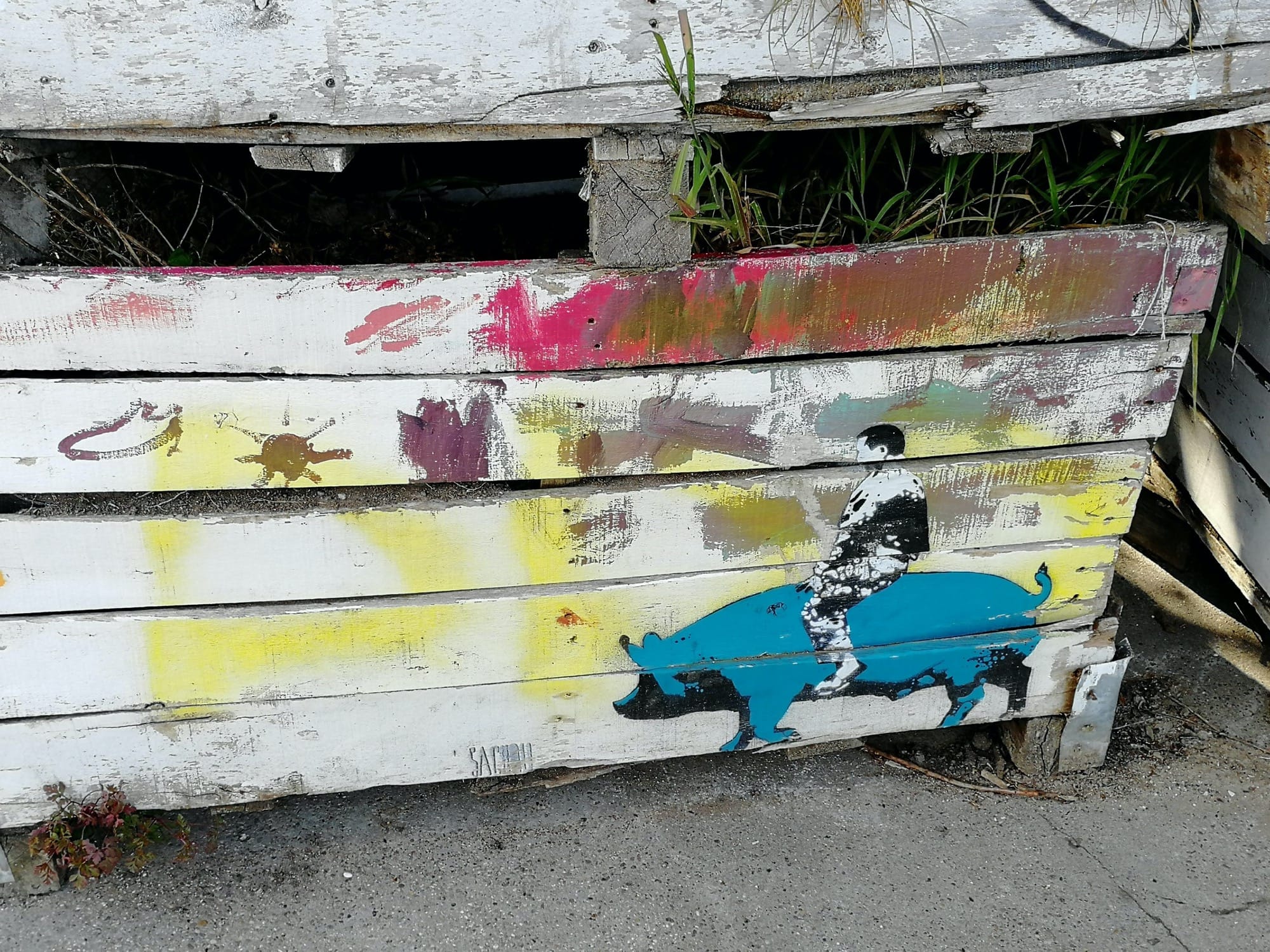 L’oeuvre est de type graffiti. Vous pouvez l’admirer dans la ville de Amsterdam en Netherlands et plus précisément ici : NDSM-Plein 102, 1033 WB Amsterdam, Pays-Bas.