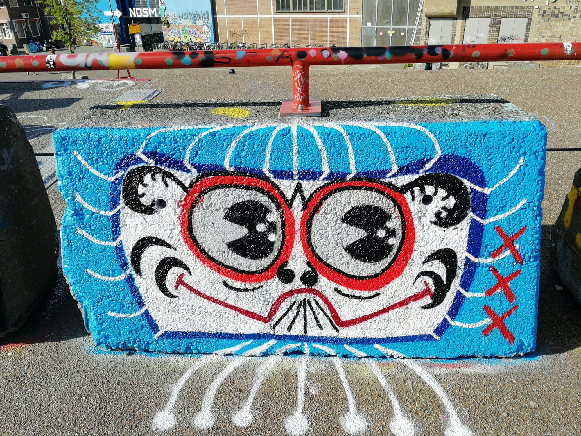 L’oeuvre est de type graffiti. Vous pouvez l’admirer dans la ville de Amsterdam en Netherlands et plus précisément ici : T.T. Neveritaweg 15 K4, 1033 WB Amsterdam, Pays-Bas.