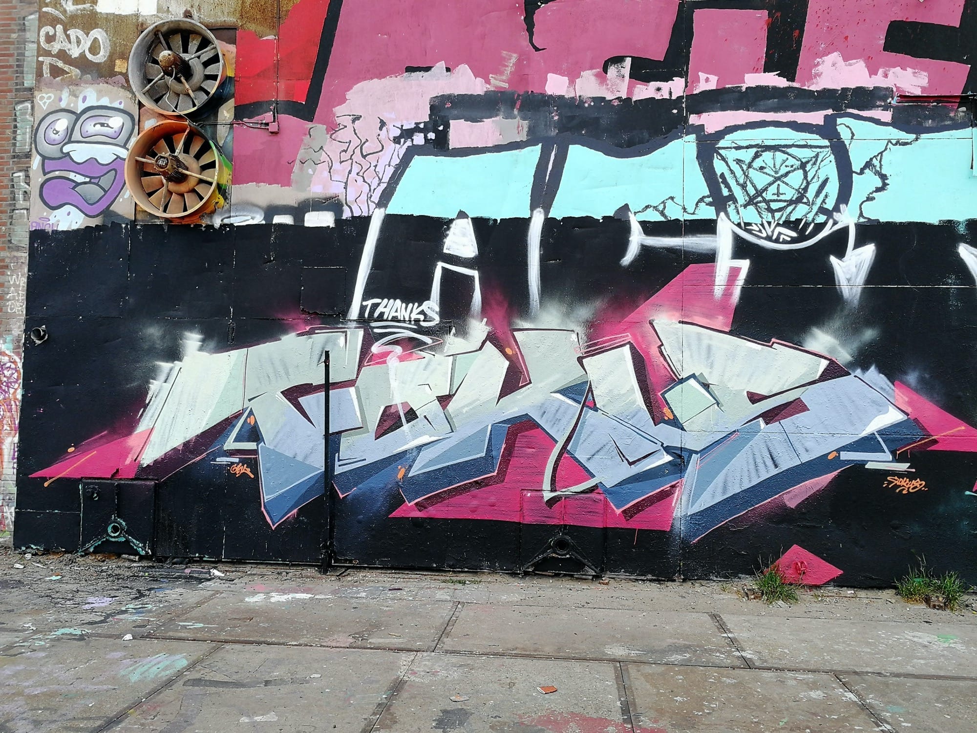 L’oeuvre est de type graffiti. Vous pouvez l’admirer dans la ville de Amsterdam en Netherlands et plus précisément ici : T.T. Neveritaweg 15, 1033 WB Amsterdam, Pays-Bas.