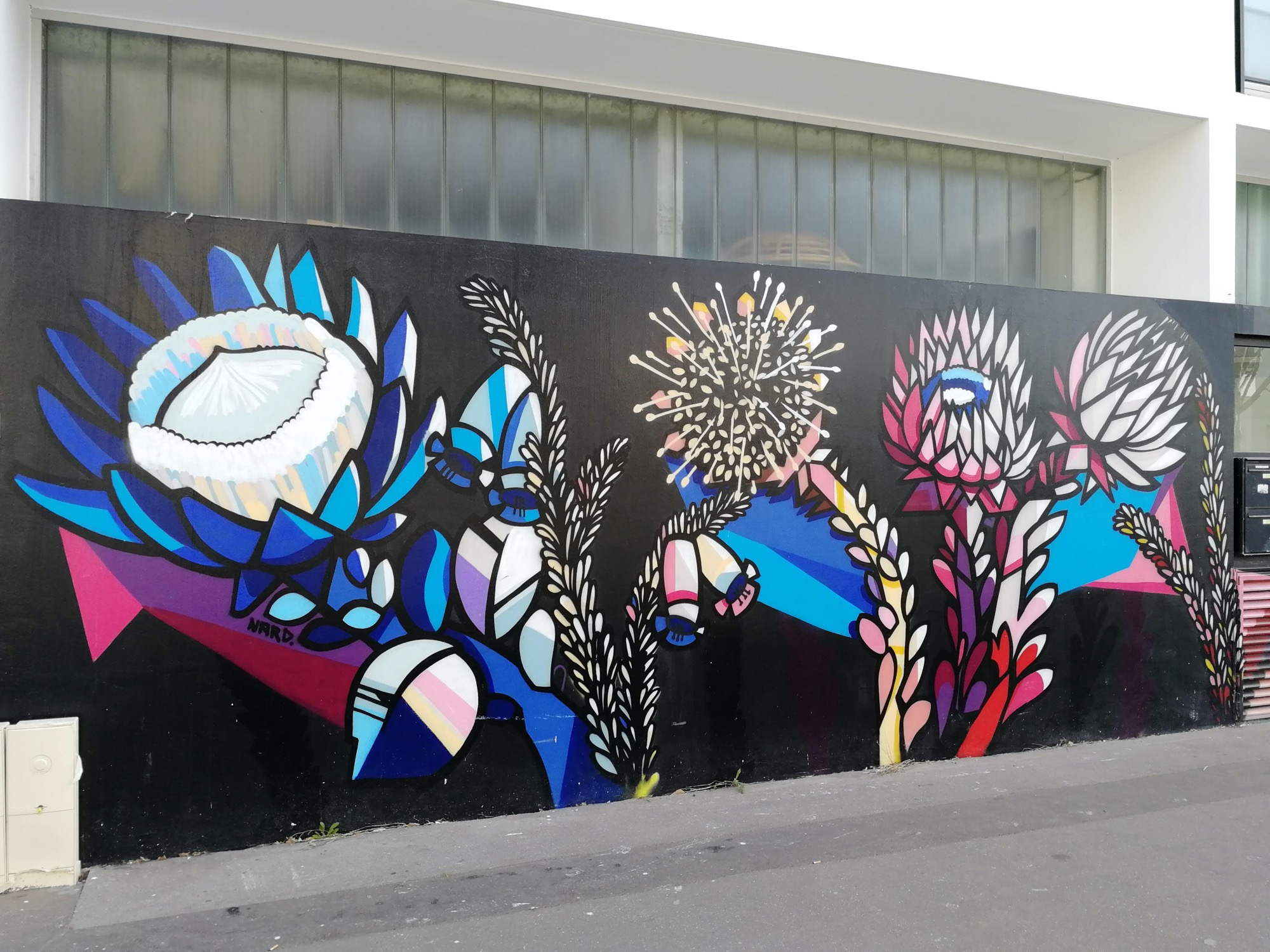 L’oeuvre est de type graffiti. Vous pouvez l’admirer dans la ville de Saint-Nazaire en France et plus précisément ici : 4 Rue du Dolmen, 44600 Saint-Nazaire, France.