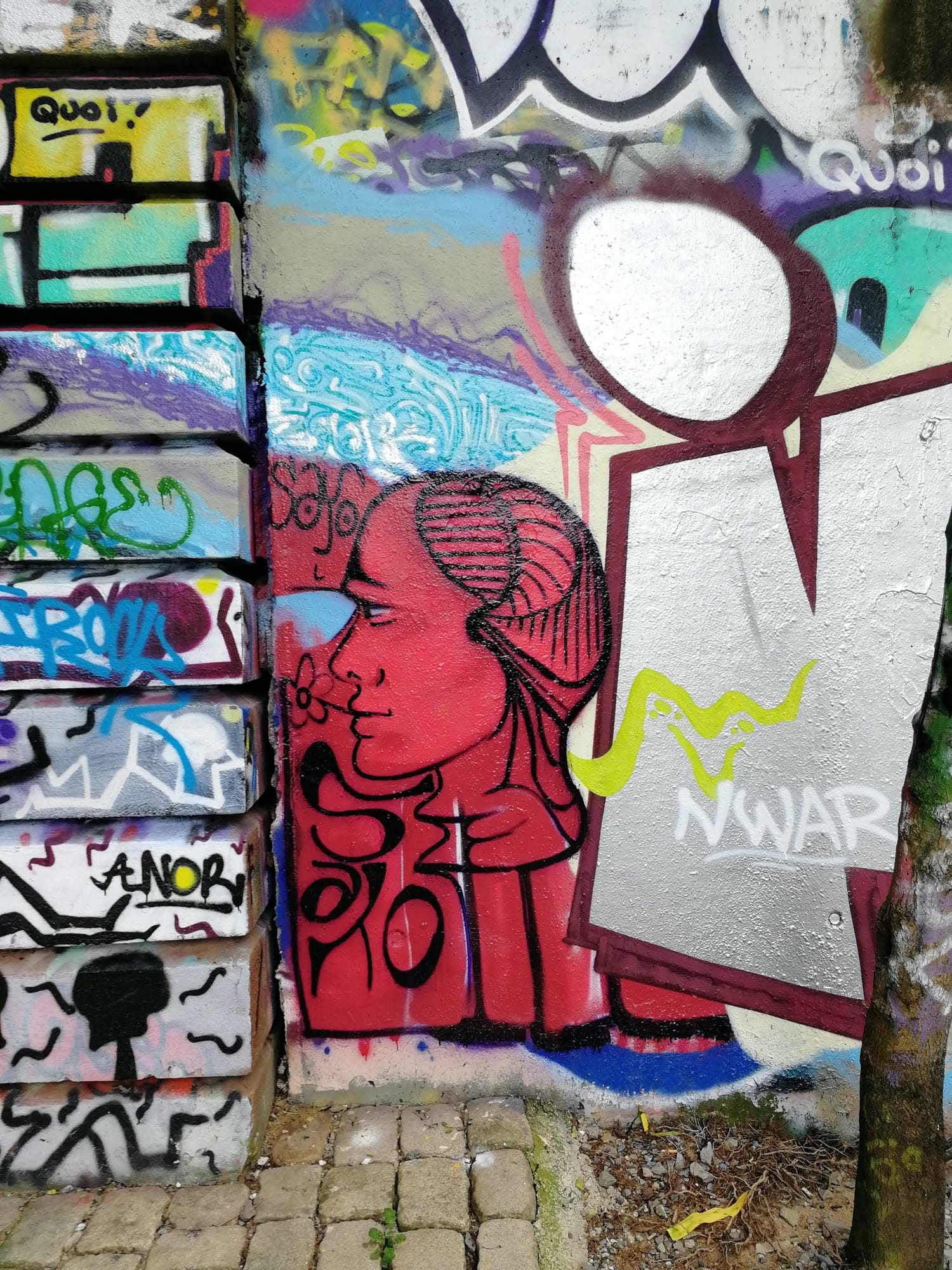 L’oeuvre est de type graffiti. Vous pouvez l’admirer dans la ville de Nantes en France et plus précisément ici : 1 Rue Grande Biesse, 44200 Nantes, France.