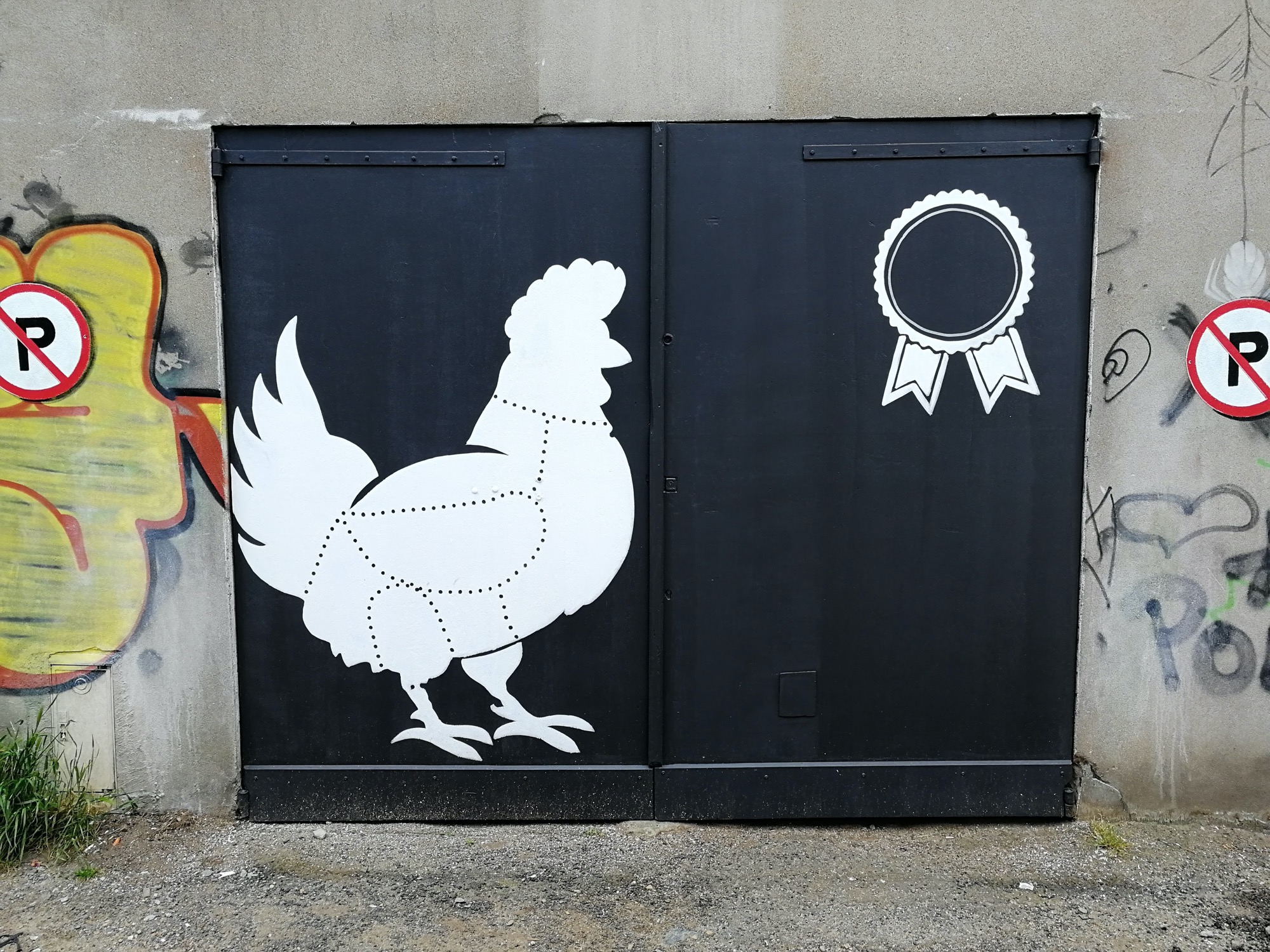 L’oeuvre est de type graffiti. Vous pouvez l’admirer dans la ville de Nantes en France et plus précisément ici : 18 Passage de la Poule Noire, 44000 Nantes, France.