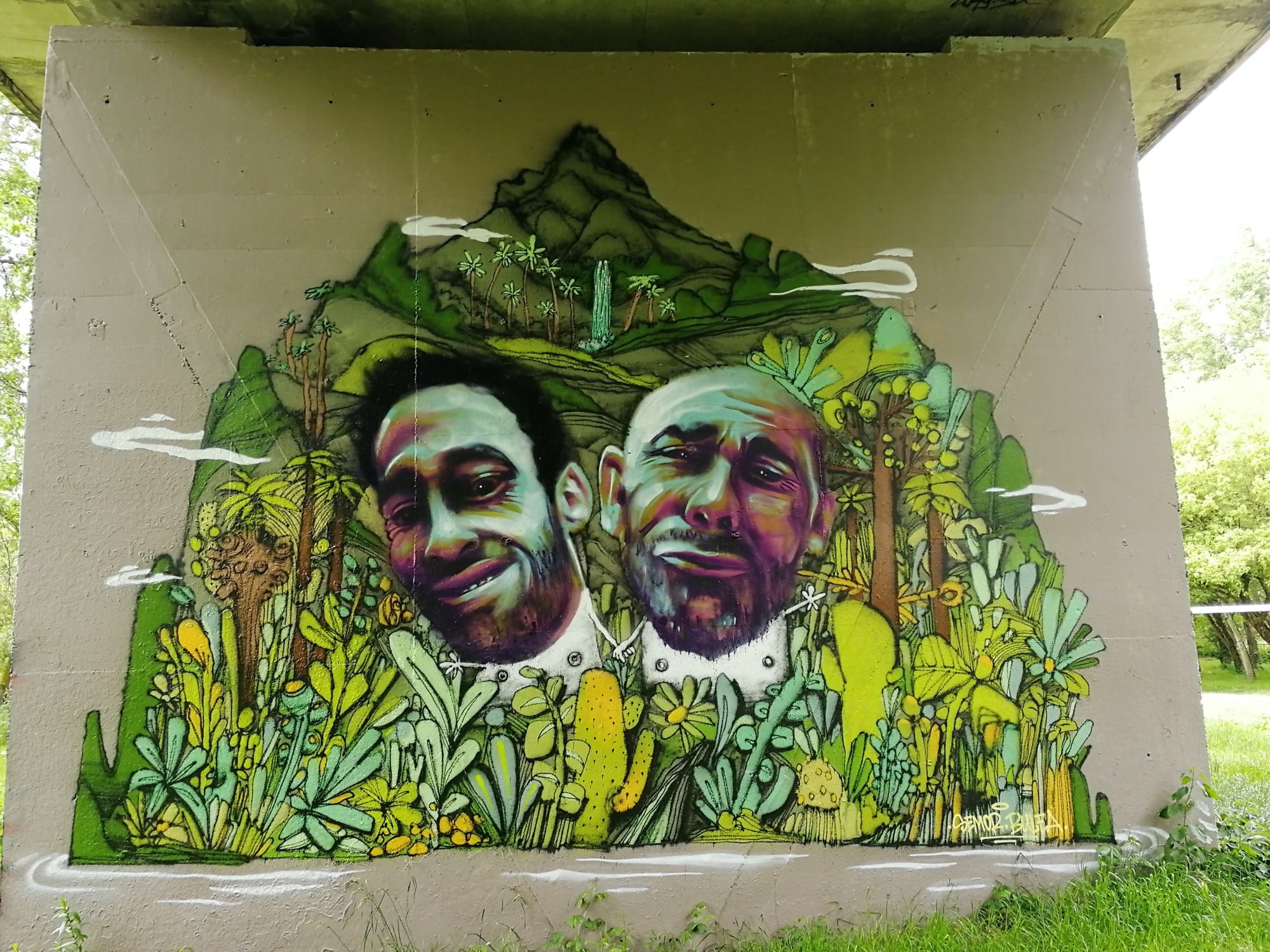 L’oeuvre est de type graffiti. Vous pouvez l’admirer dans la ville de Rezé en France et plus précisément ici : 33 Chemin Bleu, 44400 Rezé, France.