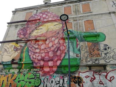 L'oeuvre est de type graffiti. Vous pouvez l'admirer dans la ville de Lisboa en Portugal et plus précisément ici : R. Martens Ferrão 18B, 1050-116 Lisboa, Portugal.