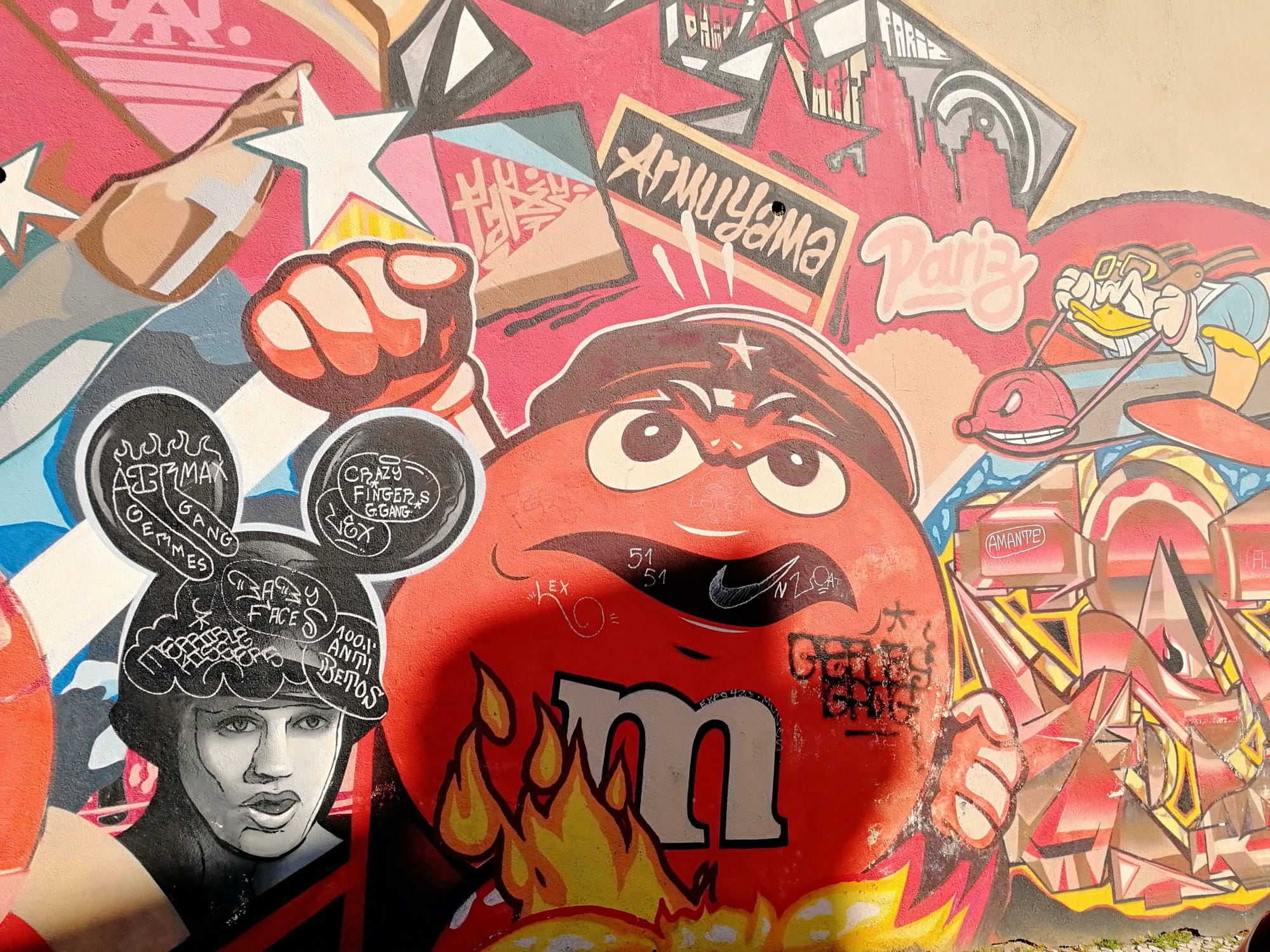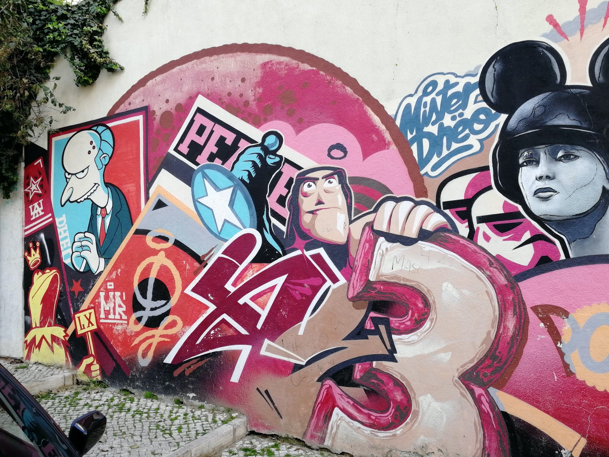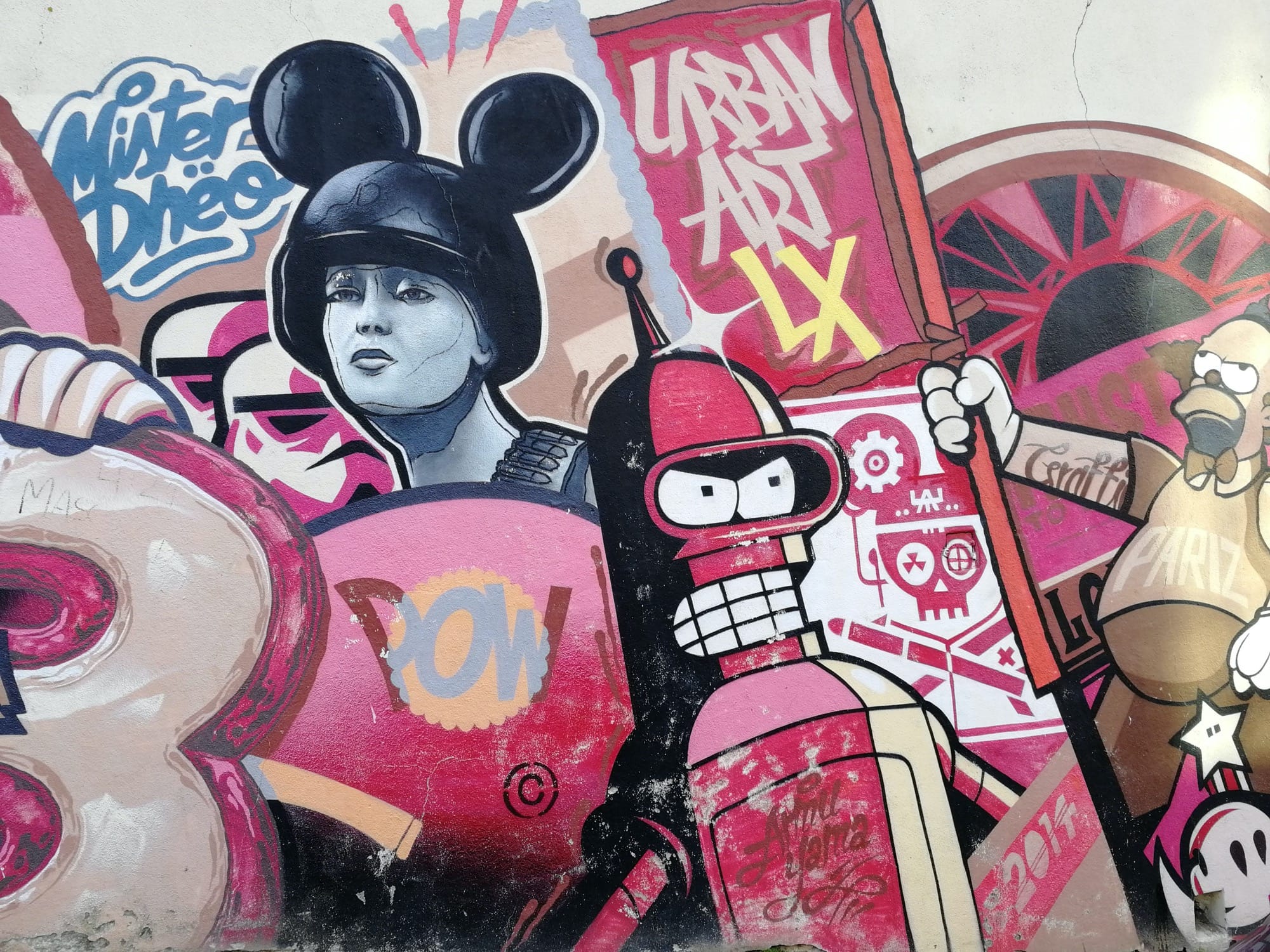 Graffiti 1897 M&Ms, Donald, Bender, Captain America, Simpson de à Lisboa Portugal