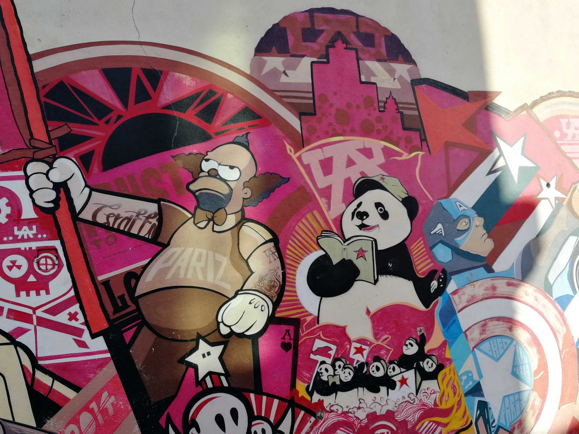 L’oeuvre M&Ms, Donald, Bender, Captain America, Simpson est de type graffiti. Vous pouvez l’admirer dans la ville de Lisboa en Portugal et plus précisément ici : R. da Voz do Operário 42, 1100-621 Lisboa, Portugal.