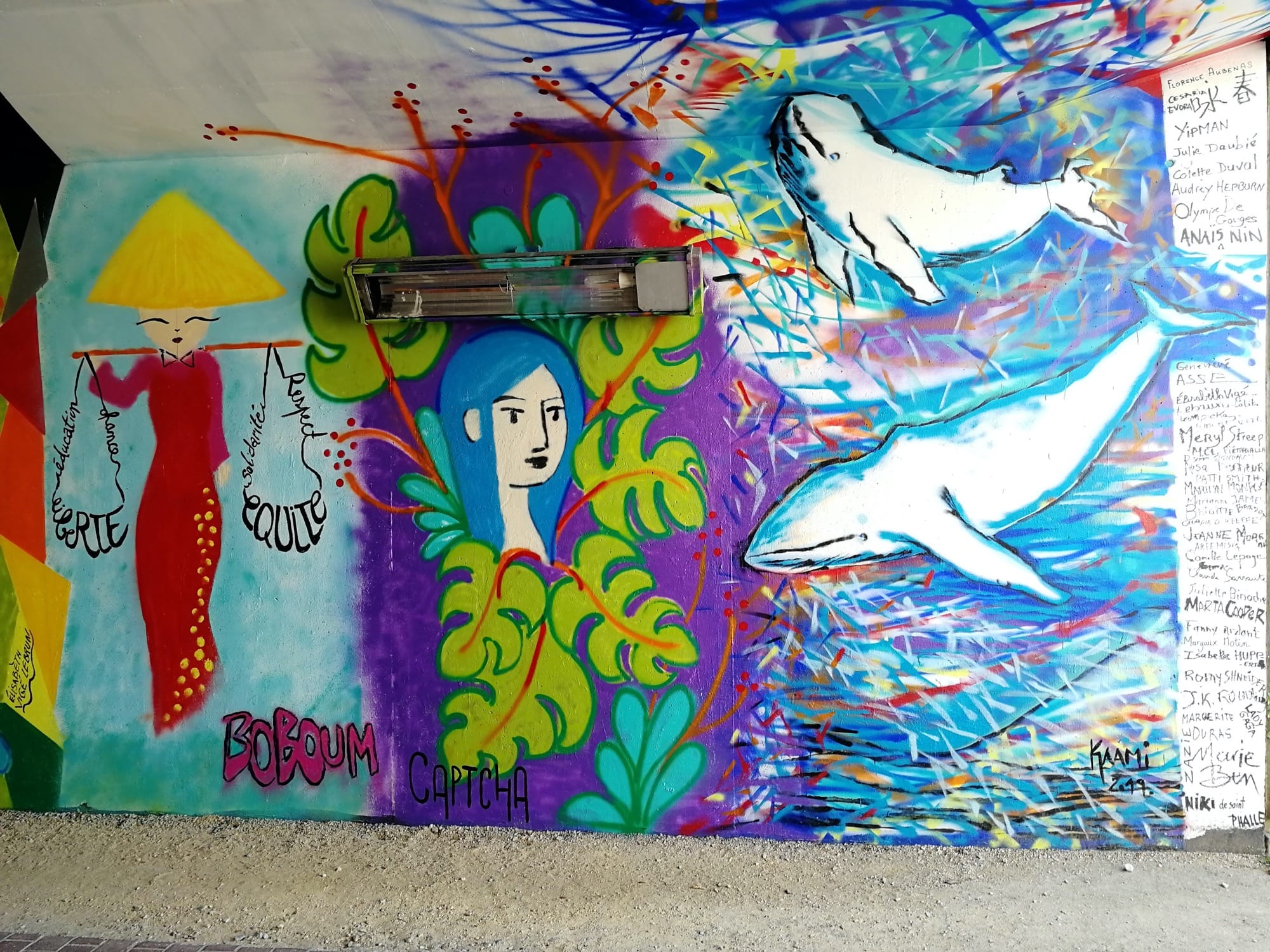 L’oeuvre est de type graffiti. Vous pouvez l’admirer dans la ville de Vannes en France et plus précisément ici : 15 Boulevard de la Paix, 56000 Vannes, France.
