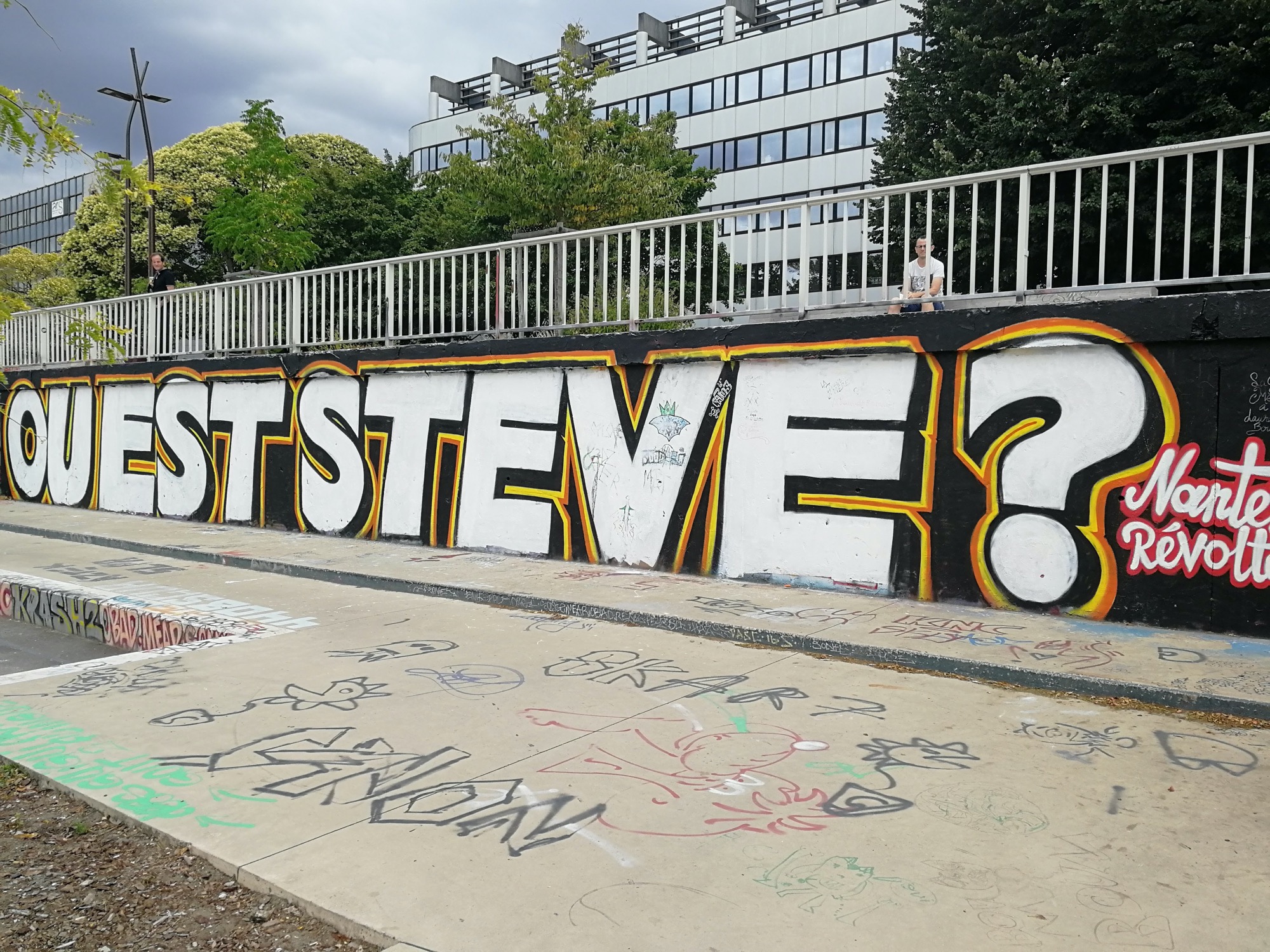 L’oeuvre Où est Steeve ? est de type graffiti. Vous pouvez l’admirer dans la ville de Nantes en France et plus précisément ici : 44200 Boulevard des Martyrs Nantais de la Résistance, 44200 Nantes, France.