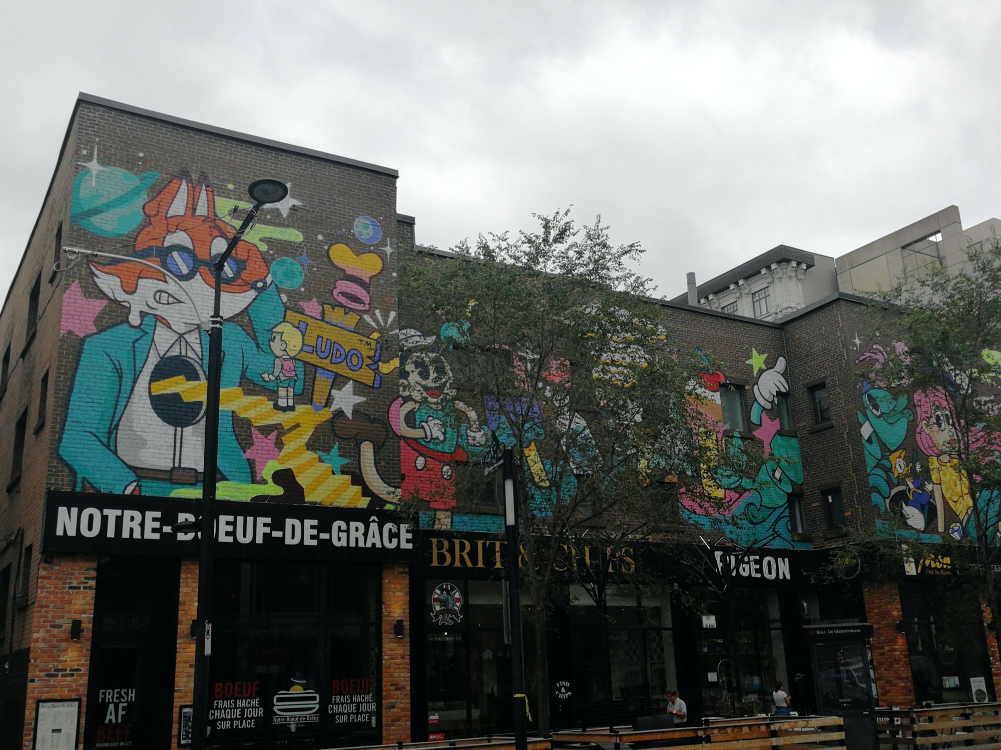 L’oeuvre est de type graffiti. Vous pouvez l’admirer dans la ville de Montréal en Canada et plus précisément ici : 1390 Boulevard de Maisonneuve O, Montréal, QC H3G 2E4, Canada.