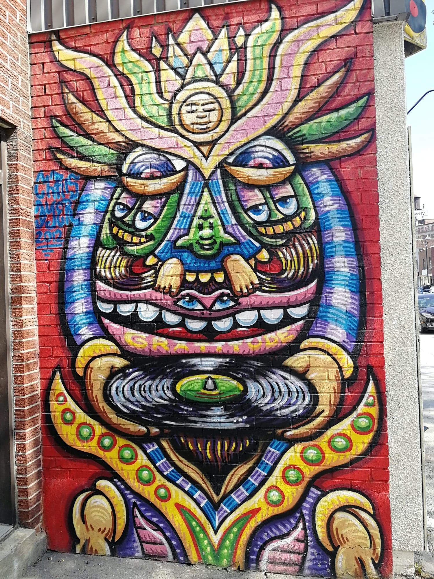 L’oeuvre est de type graffiti. Vous pouvez l’admirer dans la ville de Montréal en Canada et plus précisément ici : 6311 Boul St-Laurent, Montréal, QC H2S 3C3, Canada.