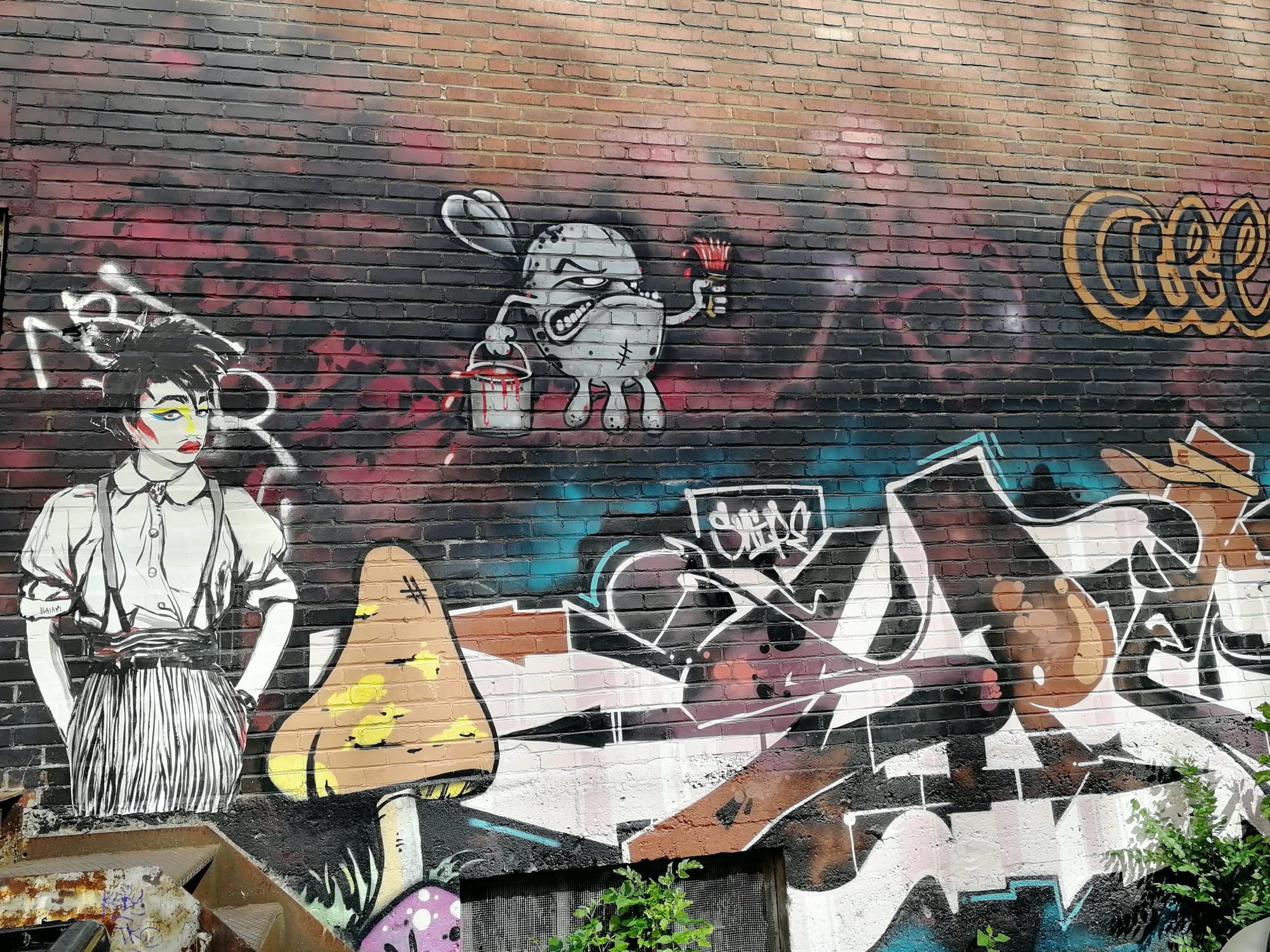 L’oeuvre est de type graffiti. Vous pouvez l’admirer dans la ville de Montréal en Canada et plus précisément ici : 160 St Viateur St E, Montreal, QC H2T 1X2, Canada.
