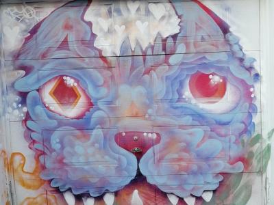 L'oeuvre est de type graffiti. Vous pouvez l'admirer dans la ville de Montréal en Canada et plus précisément ici : 3714 Rue Saint-Christophe, Montréal, QC H2L 3X5, Canada.