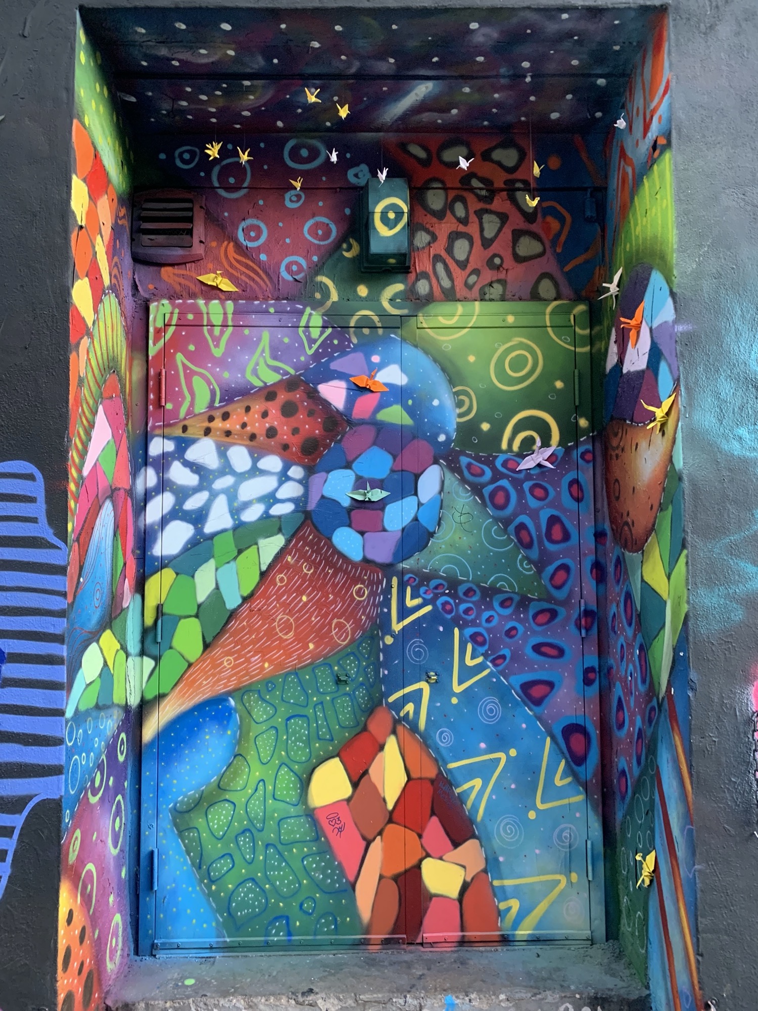 L’oeuvre est de type graffiti. Vous pouvez l’admirer dans la ville de Montréal en Canada et plus précisément ici : 157 Rue Sainte-Catherine O, Montréal, QC H2X 1K8, Canada.