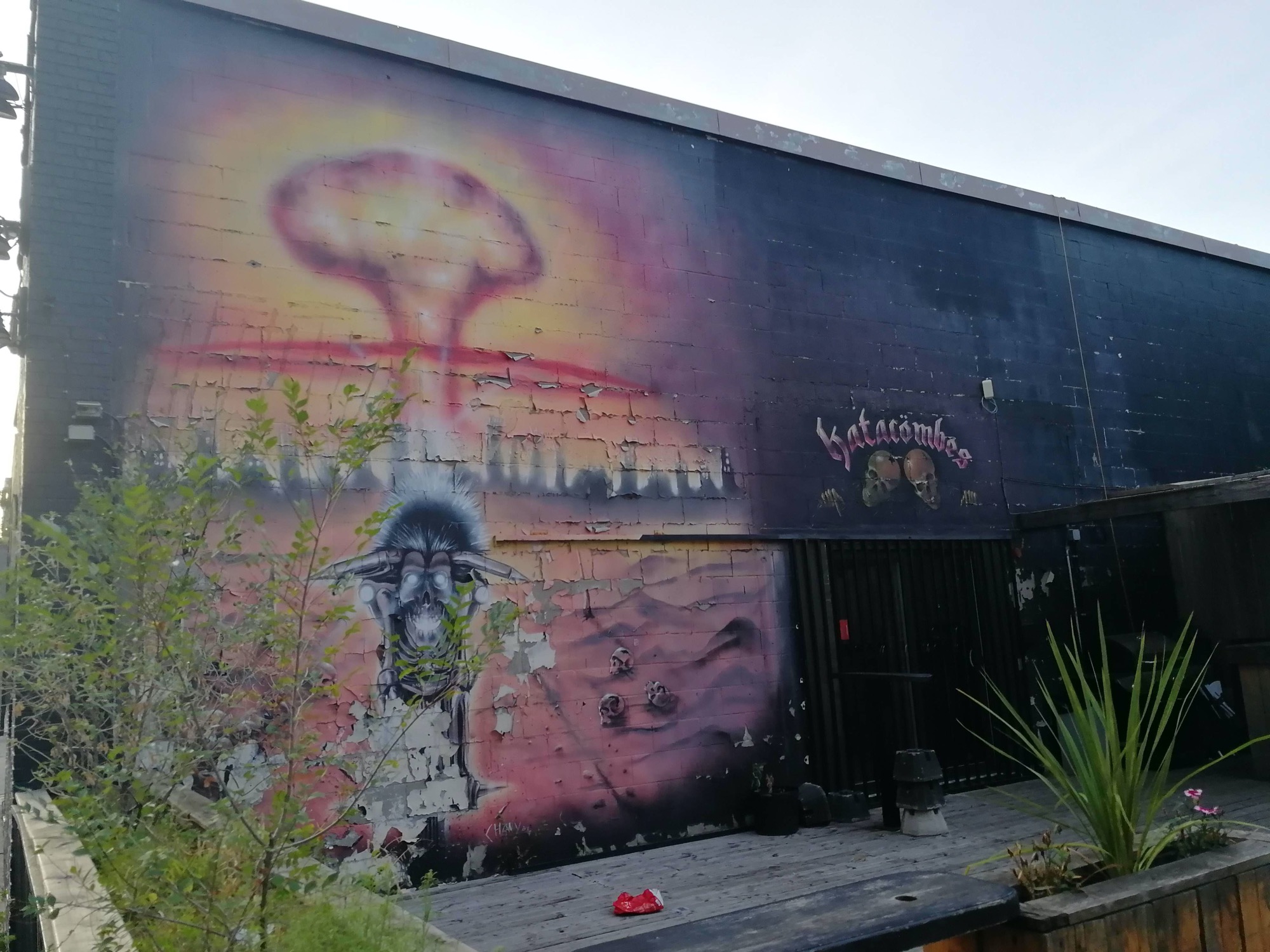 L’oeuvre est de type graffiti. Vous pouvez l’admirer dans la ville de Montréal en Canada et plus précisément ici : Saint-Laurent / Ontario, Montréal, QC H2X 2S9, Canada.