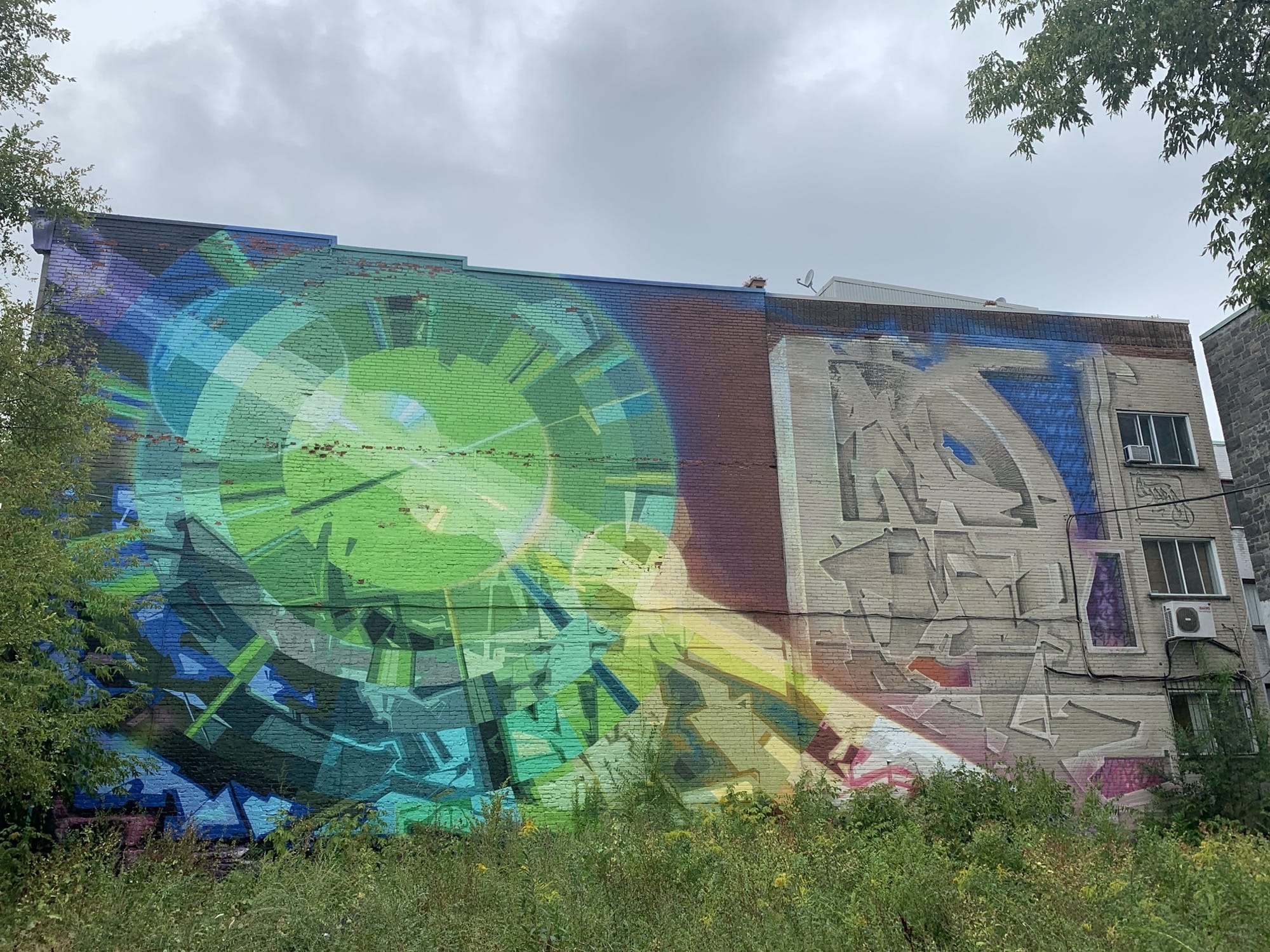 L’oeuvre est de type graffiti. Vous pouvez l’admirer dans la ville de Montréal en Canada et plus précisément ici : 2035 Boul St-Laurent, Montréal, QC H2X 2T3, Canada.