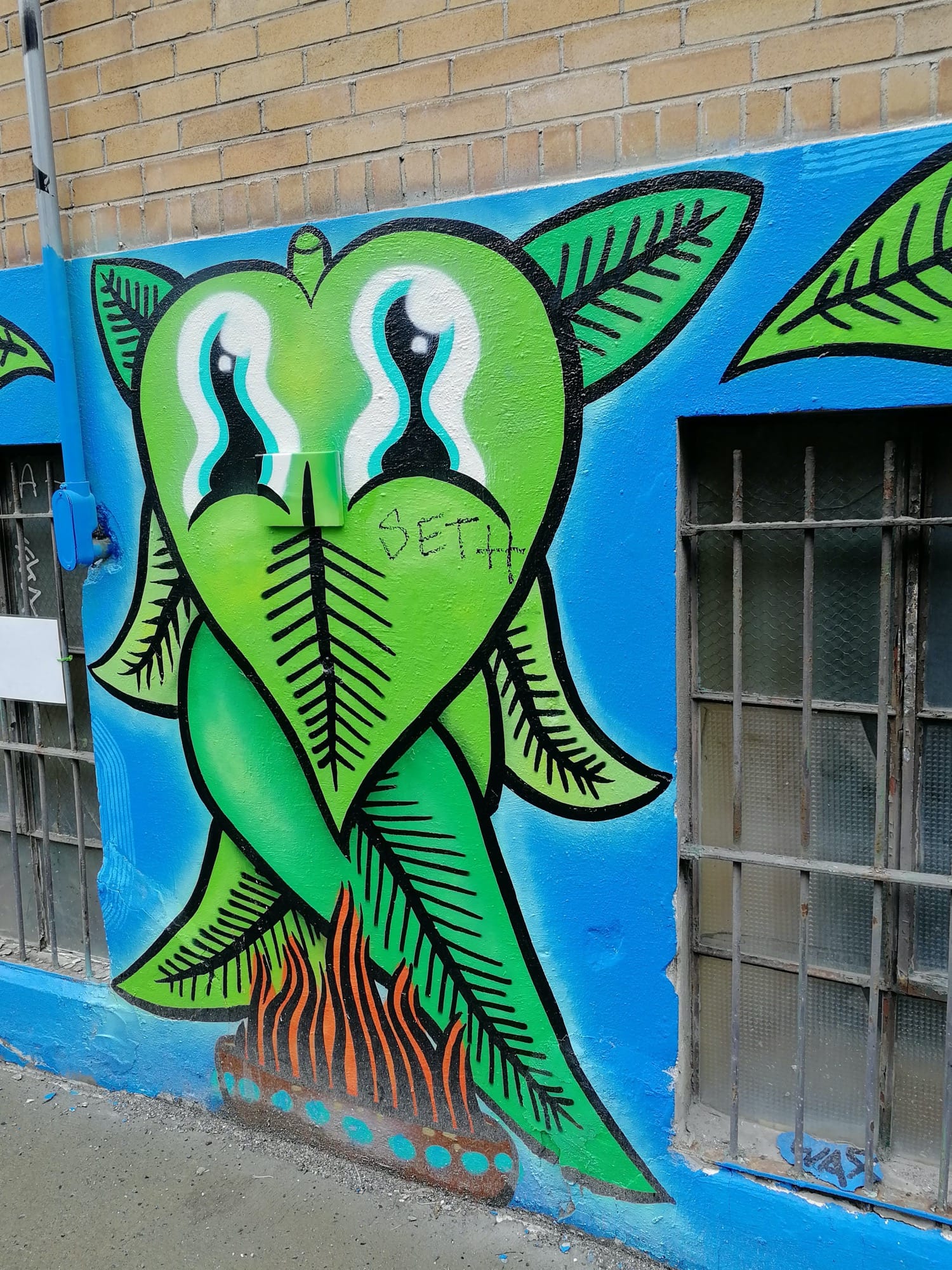 L’oeuvre est de type graffiti. Vous pouvez l’admirer dans la ville de Montréal en Canada et plus précisément ici : 23 Rue Guilbault O, Montréal, QC H2X 2V4, Canada.