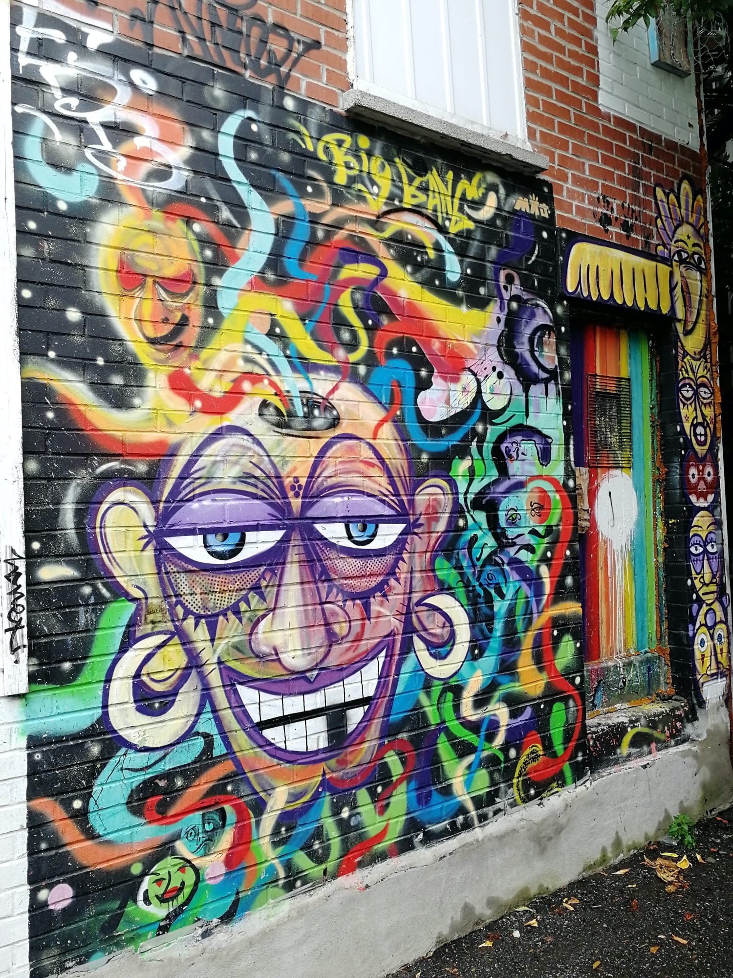 L’oeuvre est de type graffiti. Vous pouvez l’admirer dans la ville de Montréal en Canada et plus précisément ici : 111 Rue Roy E, Montréal, QC H2W 1M1, Canada.