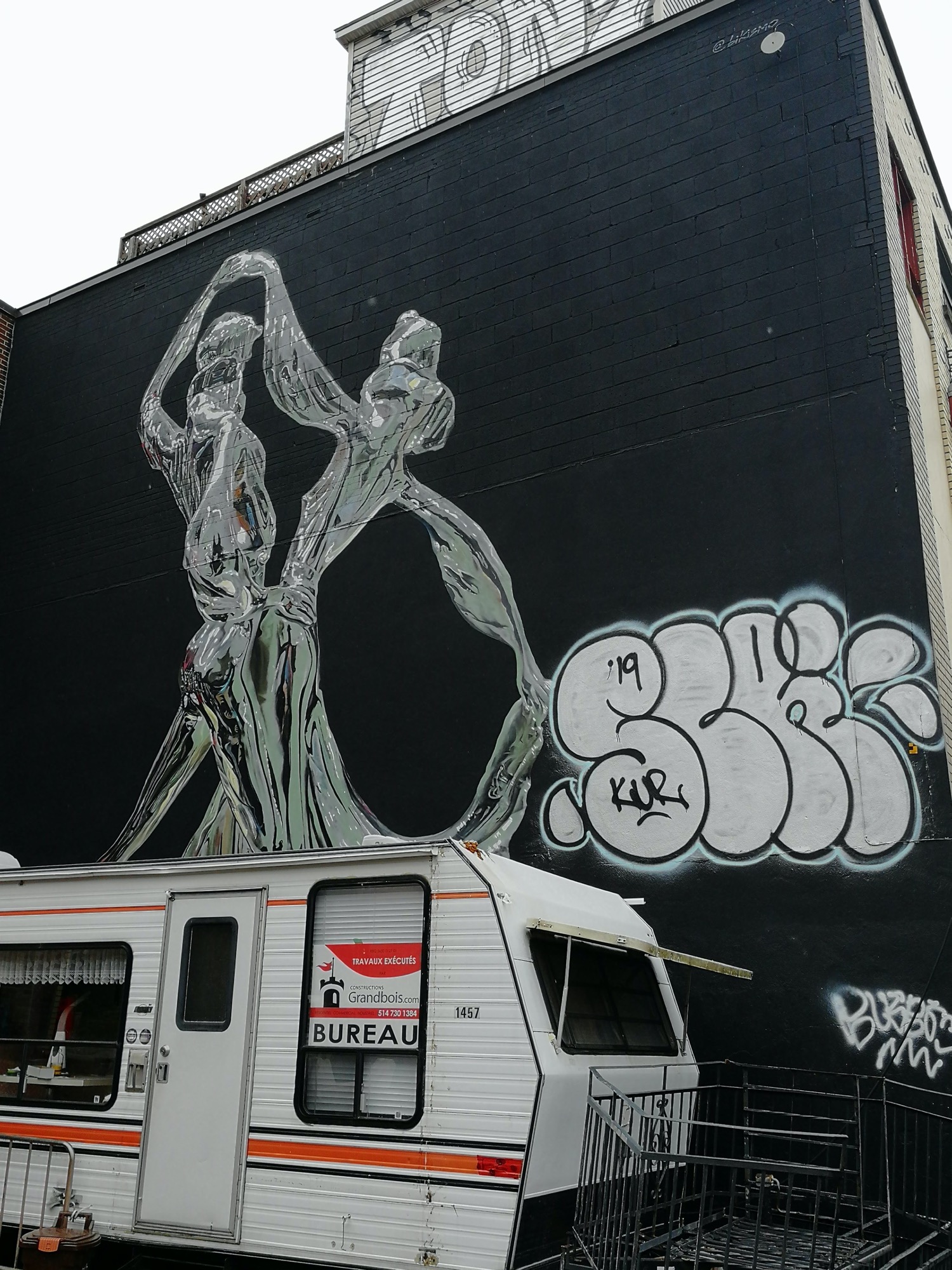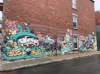 L’oeuvre est de type graffiti. Vous pouvez l’admirer dans la ville de Montréal en Canada et plus précisément ici : 3935 Avenue Coloniale, Montréal, QC H2W 2B7, Canada.